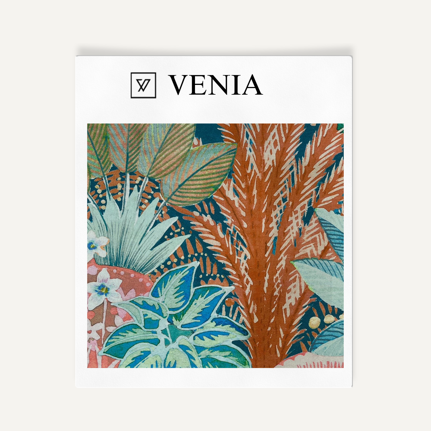 Warm amber tones meet deep tropical foliage in Amber Palm, a fabric designed to ground your space in nature. Think rich upholstery, accent walls, or mood-heavy drapery.