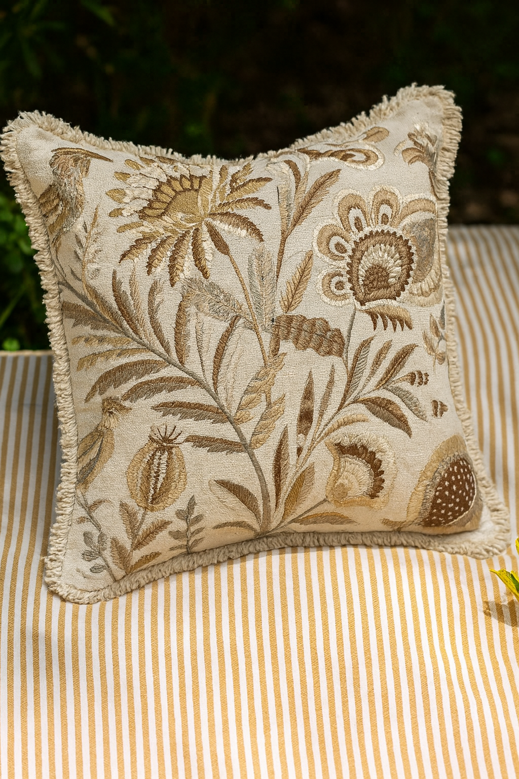 A lyrical blend of texture and detail, Autumn Song features intricate botanical embroidery inspired by the quiet beauty of changing seasons. Autumn Song brings warmth and grace to cushions, sofas, drapery, and more. Its gentle motifs offer an artisanal finish suited for serene yet luxurious spaces.