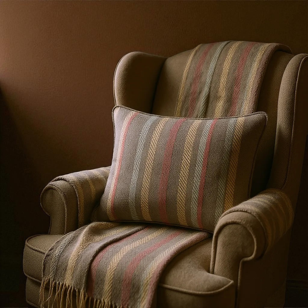 Bruno brings rich brown stripes and subtle stripes together in a timeless cushion. With earthy depth and tailored patterning, it layers beautifully in both modern and classic settings.