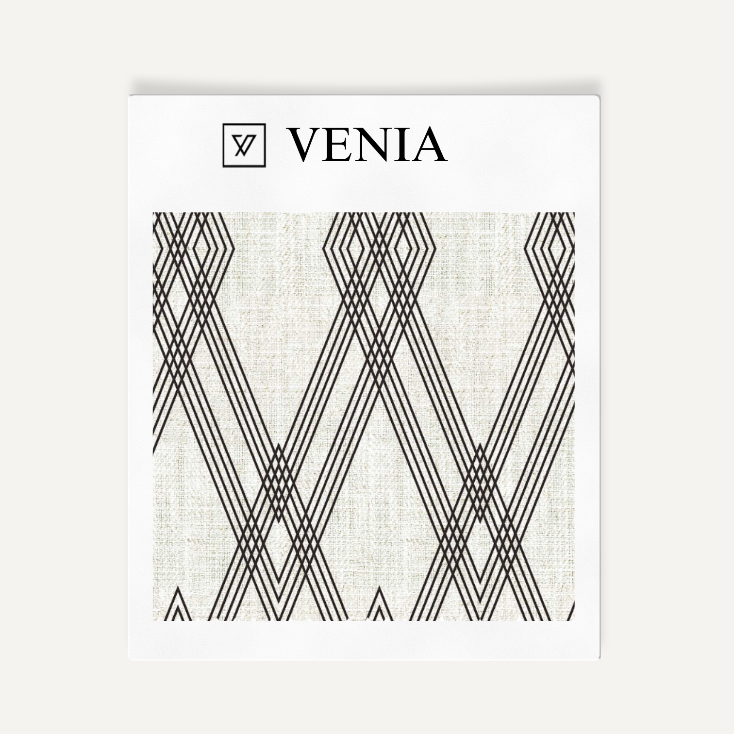 Diamond Weave reinterprets the lattice in a bold graphic style. The repeating diamond pattern feels architectural yet soft in monochrome, giving interiors structure without being overwhelming. Perfect for drapery, cushions, or upholstery accents.