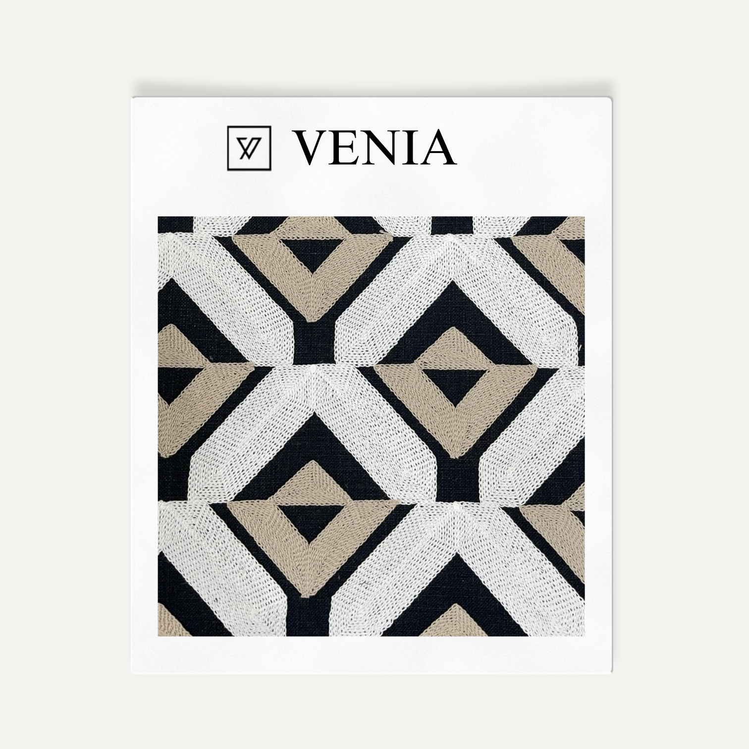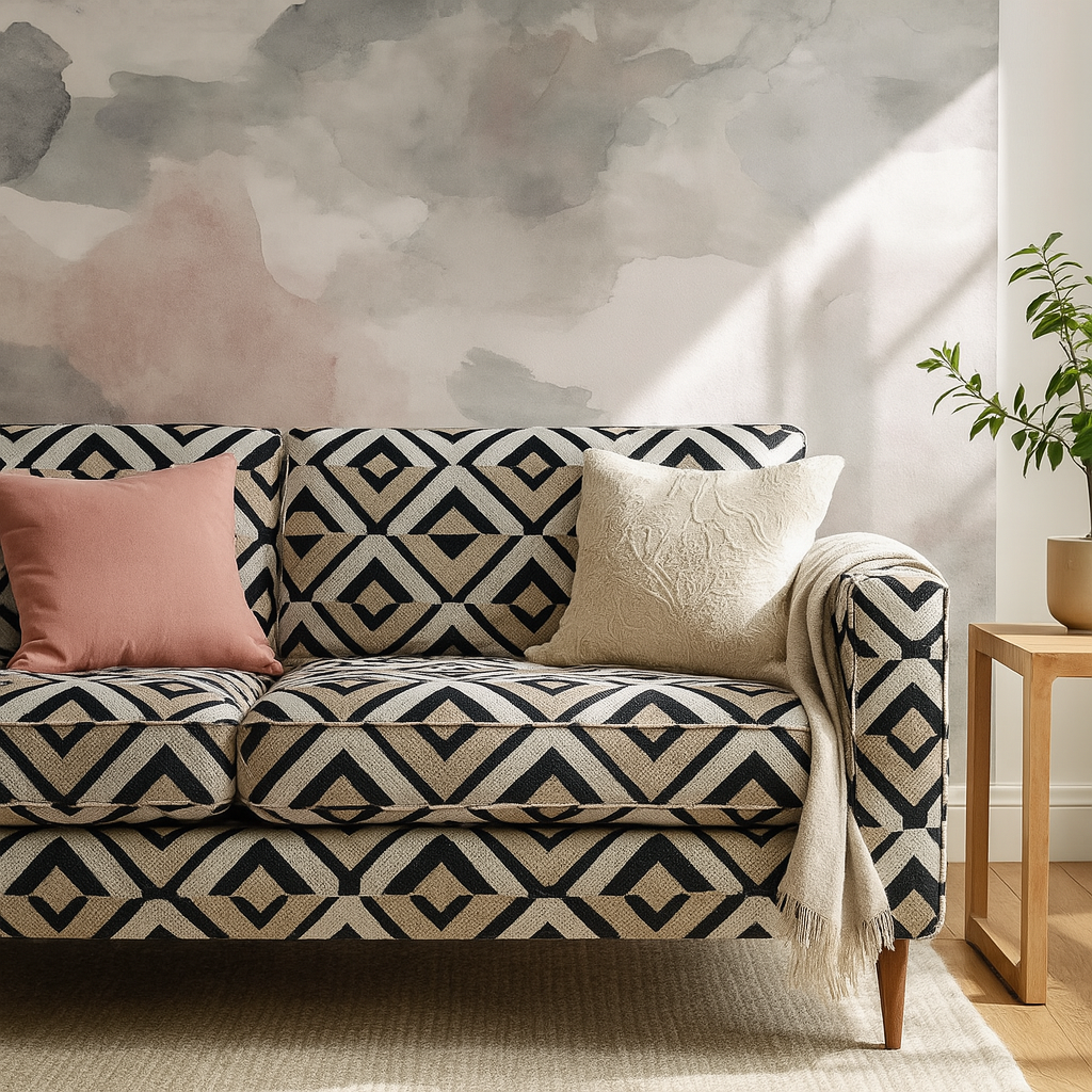 Bold diamond motifs mirror across the fabric, creating a dynamic, architectural surface. Echo Prism is a statement-maker for sofas, cushions, headboards, and more.