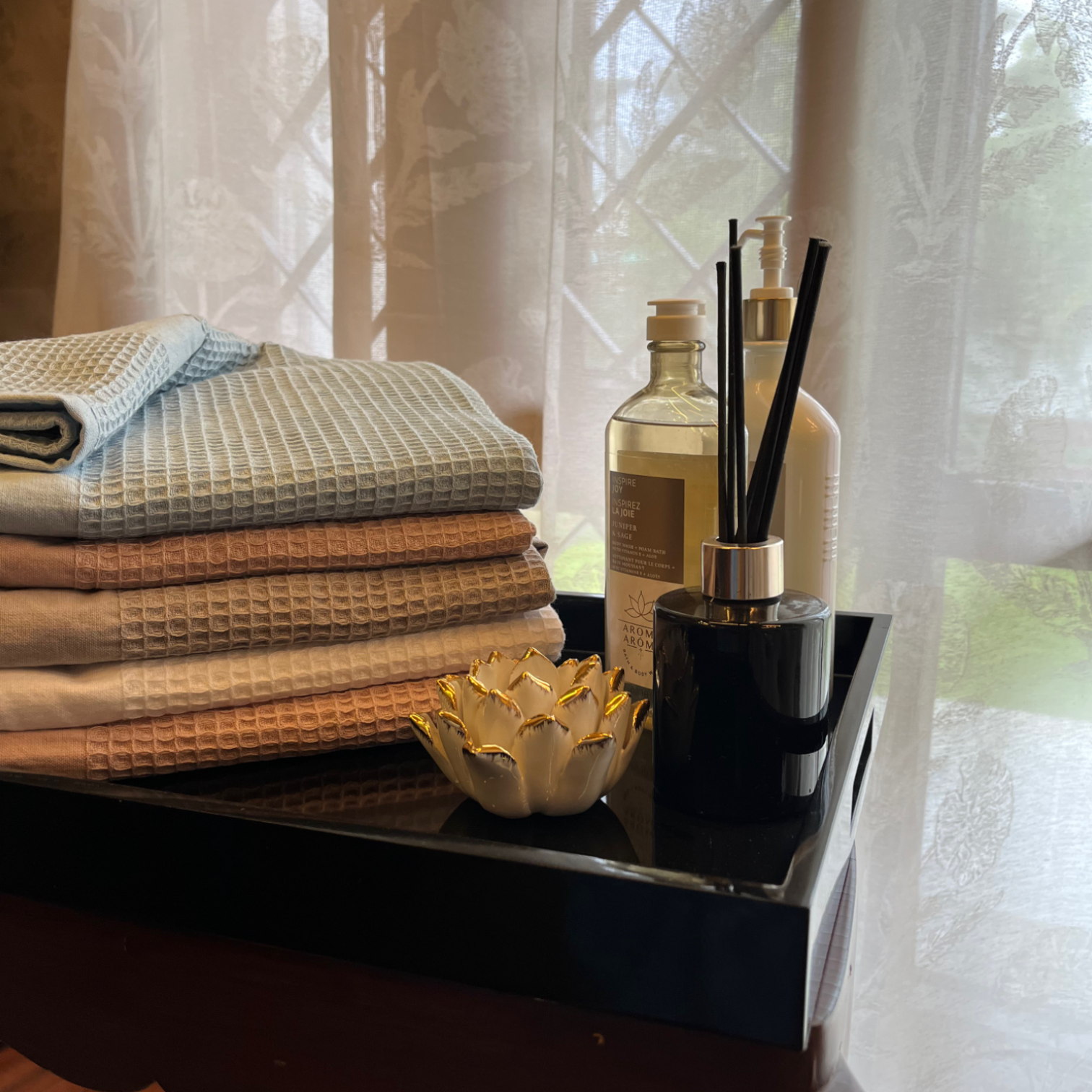 The unique waffle weave not only provides a soft and absorbent surface but also enhances the towels' breathability, ensuring a quick and efficient drying process.