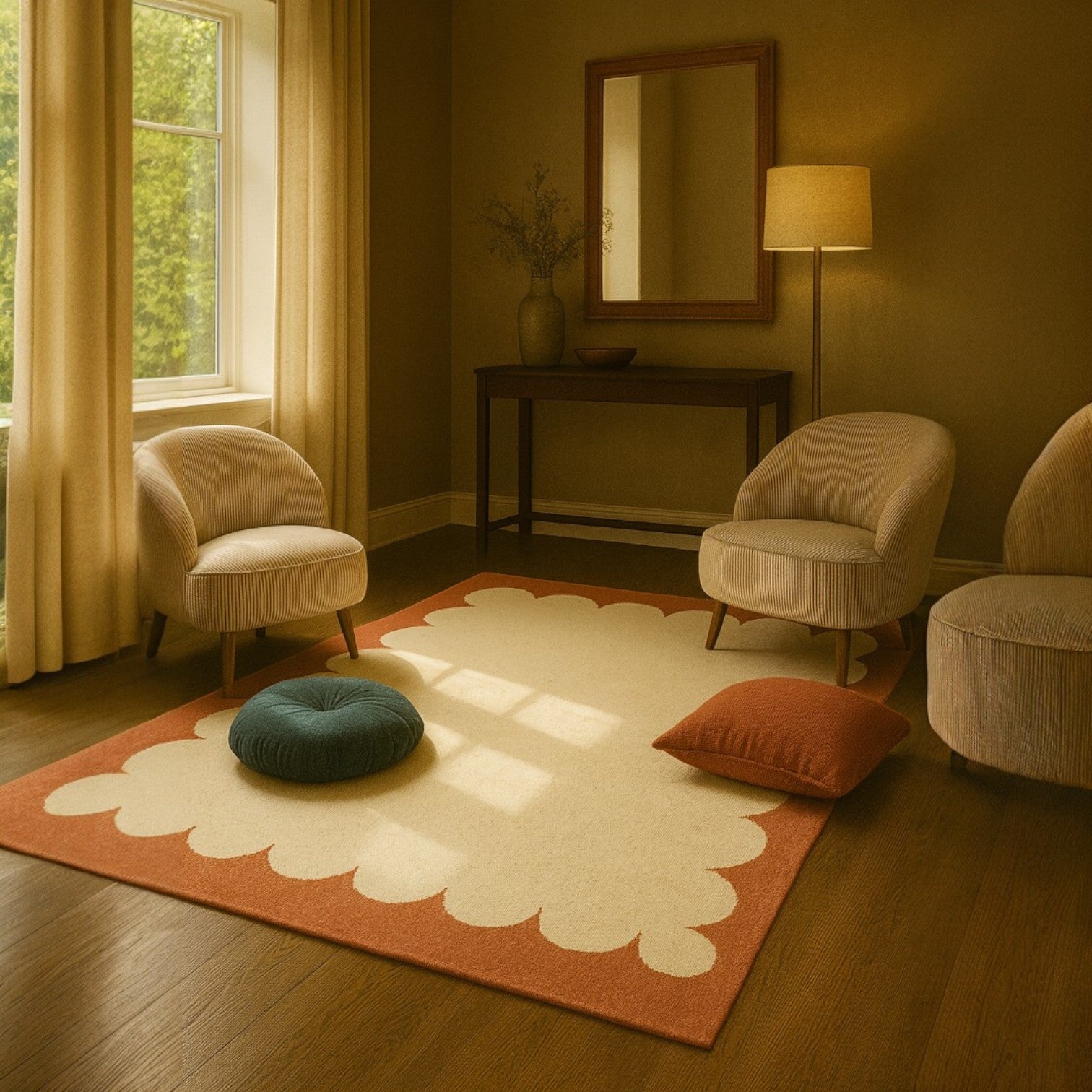 With a wink of warmth and a whole lot of charm, Gigi is equal parts playful and poised. Its soft ivory base is framed by terracotta scallops - a sunny, spirited touch that instantly lifts the room. Whether you're styling a calm corner or a bold, layered space, Gigi brings personality in all the right ways.