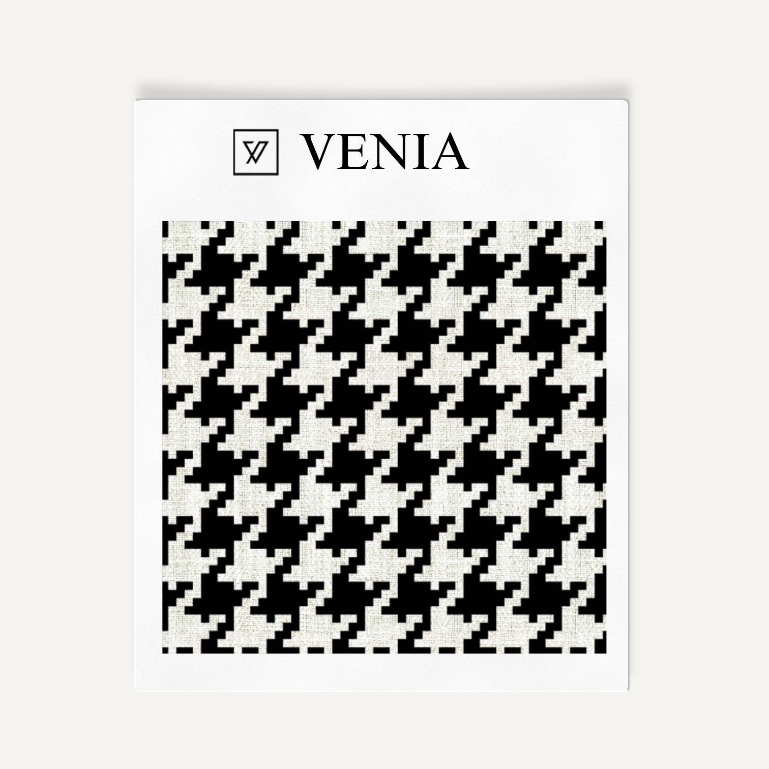 Grand Houndstooth reimagines the traditional houndstooth pattern at a strikingly large scale. The oversized tooth design makes an unmistakable impact, perfect for interiors where the fabric itself becomes the focal point. In bold black-and-ivory contrast, Grand Houndstooth is ideal for feature chairs, dramatic cushions, or statement walls of drapery.