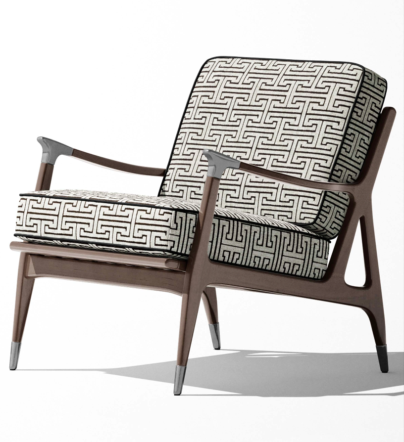 Greco Maze channels classical architecture with its strong, interconnected lines. The pattern feels sculptural and timeless, lending a sense of structure and permanence to upholstered furniture or statement walls.