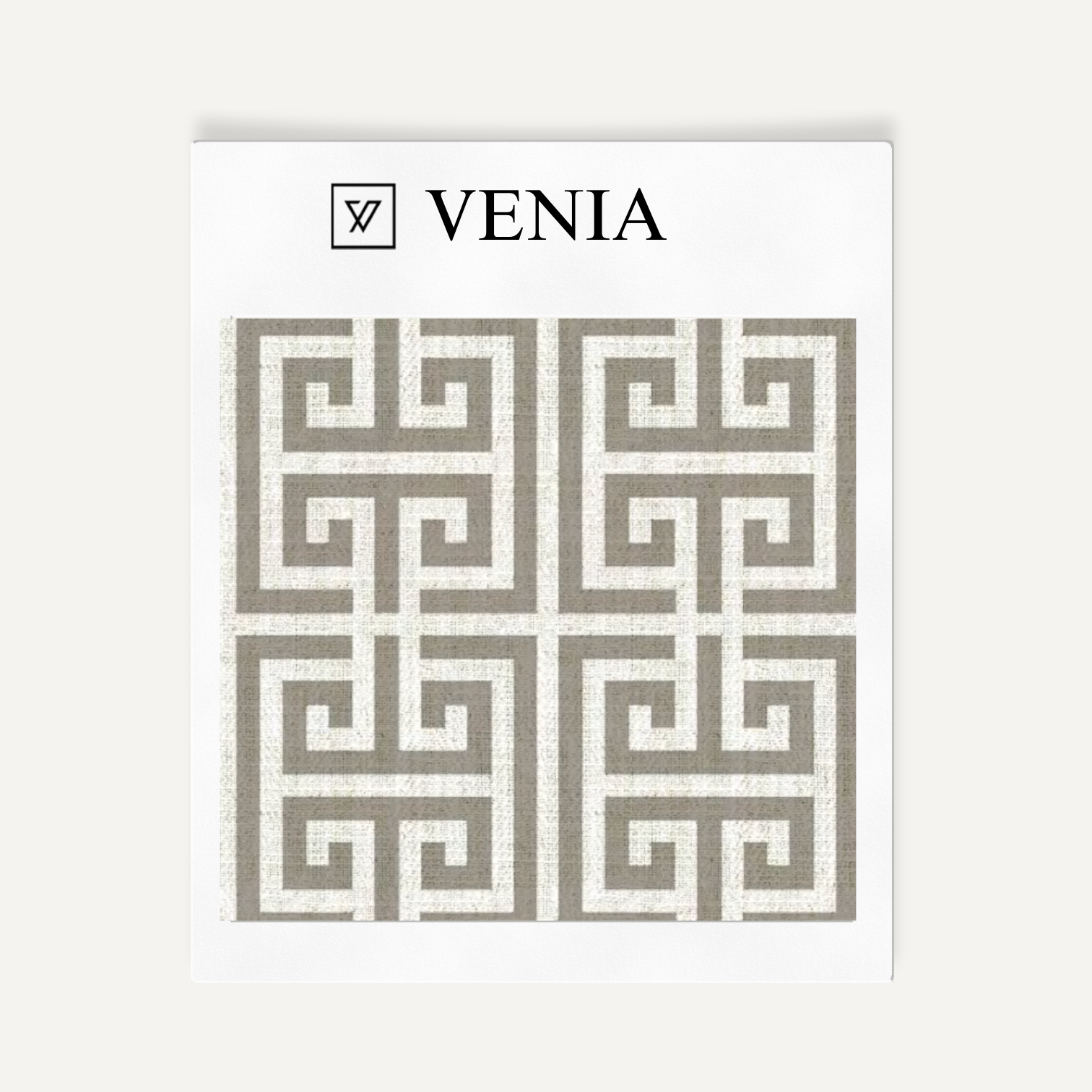 Greek Key remains one of the most enduring motifs in design, a symbol of continuity and balance. Its structured spirals feel timeless yet contemporary when applied to textiles. The repeat adds order and symmetry, making it an anchor for interiors — whether used in tailored upholstery, curtains, or statement cushions.