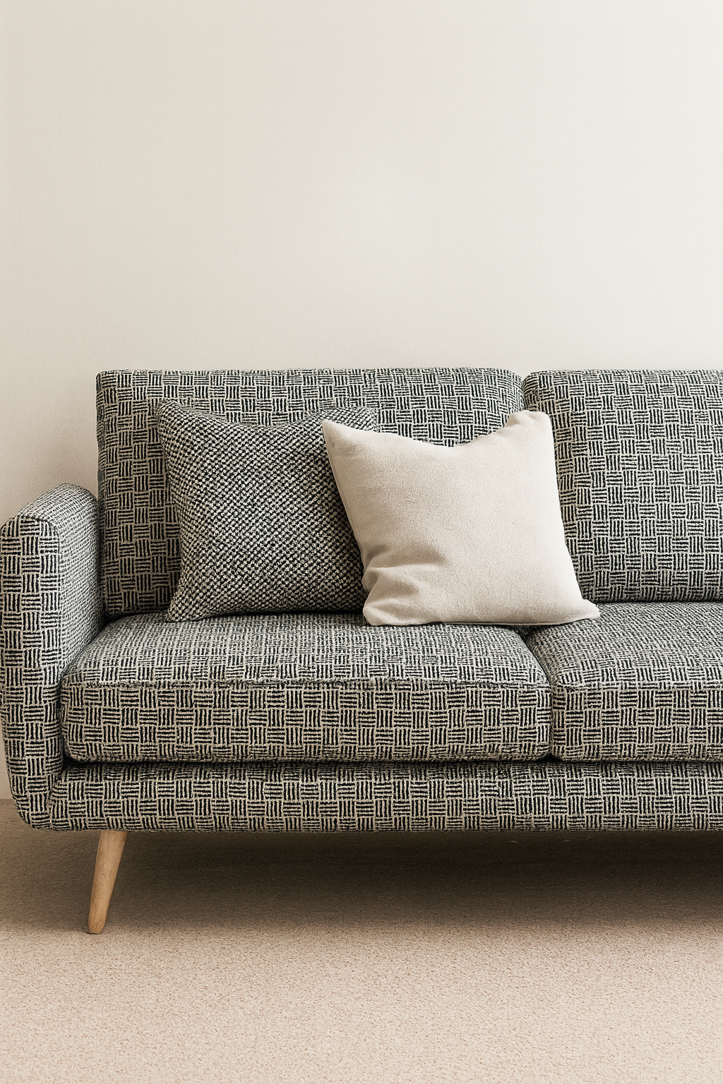Gridlock Slate offers modern structure through a fine square repeat. The woven effect adds quiet texture, perfect for clean-lined spaces and understated upholstery.