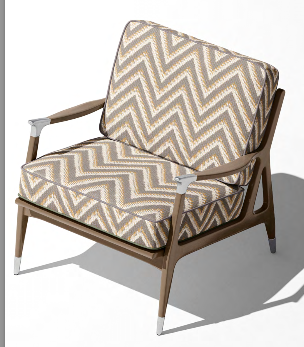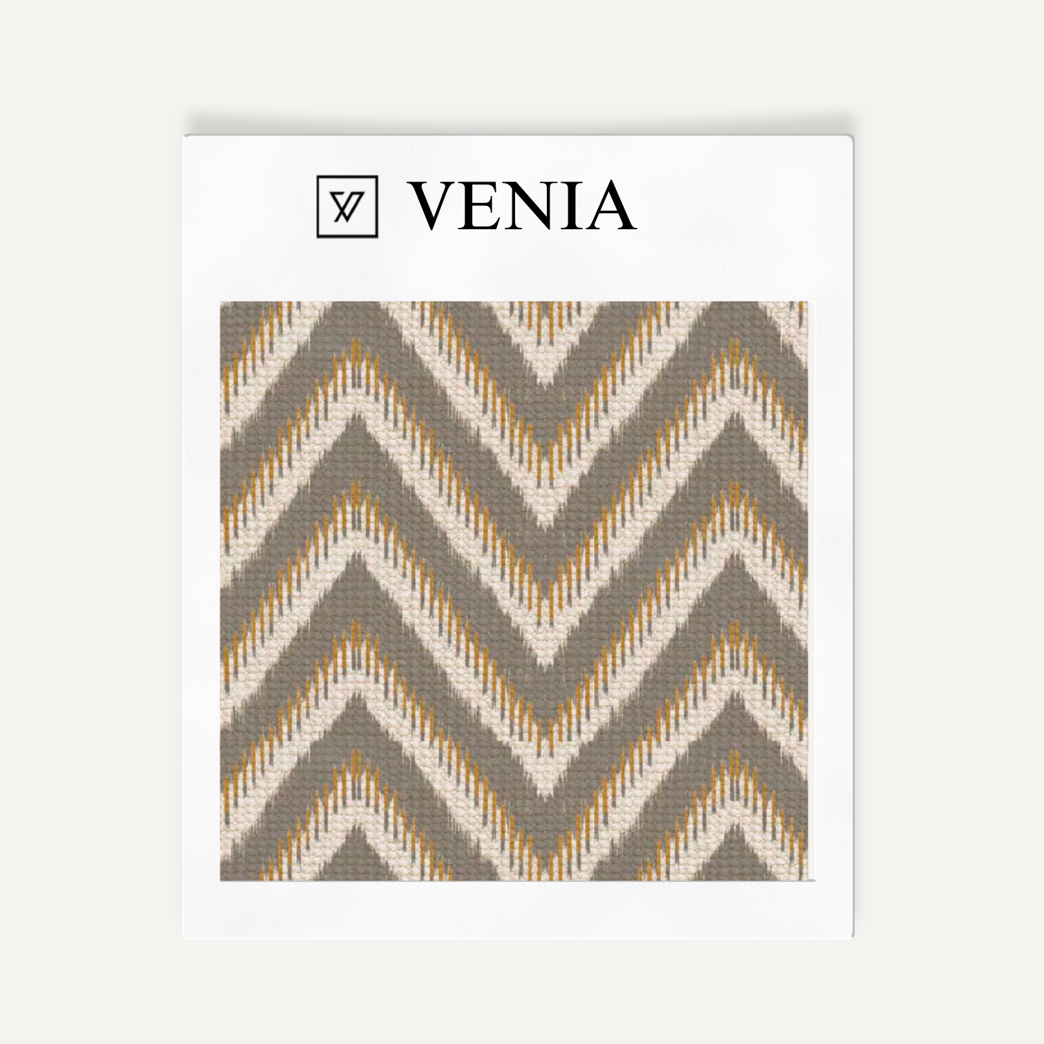 Heritage Chevron is an ikat-inspired fabric featuring a bold zig-zag motif. Its rhythmic chevron design adds structure and movement, making it perfect for upholstery, wing chairs, and cushions. Woven in a durable material, the fabric blends traditional ikat craft with a modern geometric style — ideal for statement chairs, sofas, and drapery.