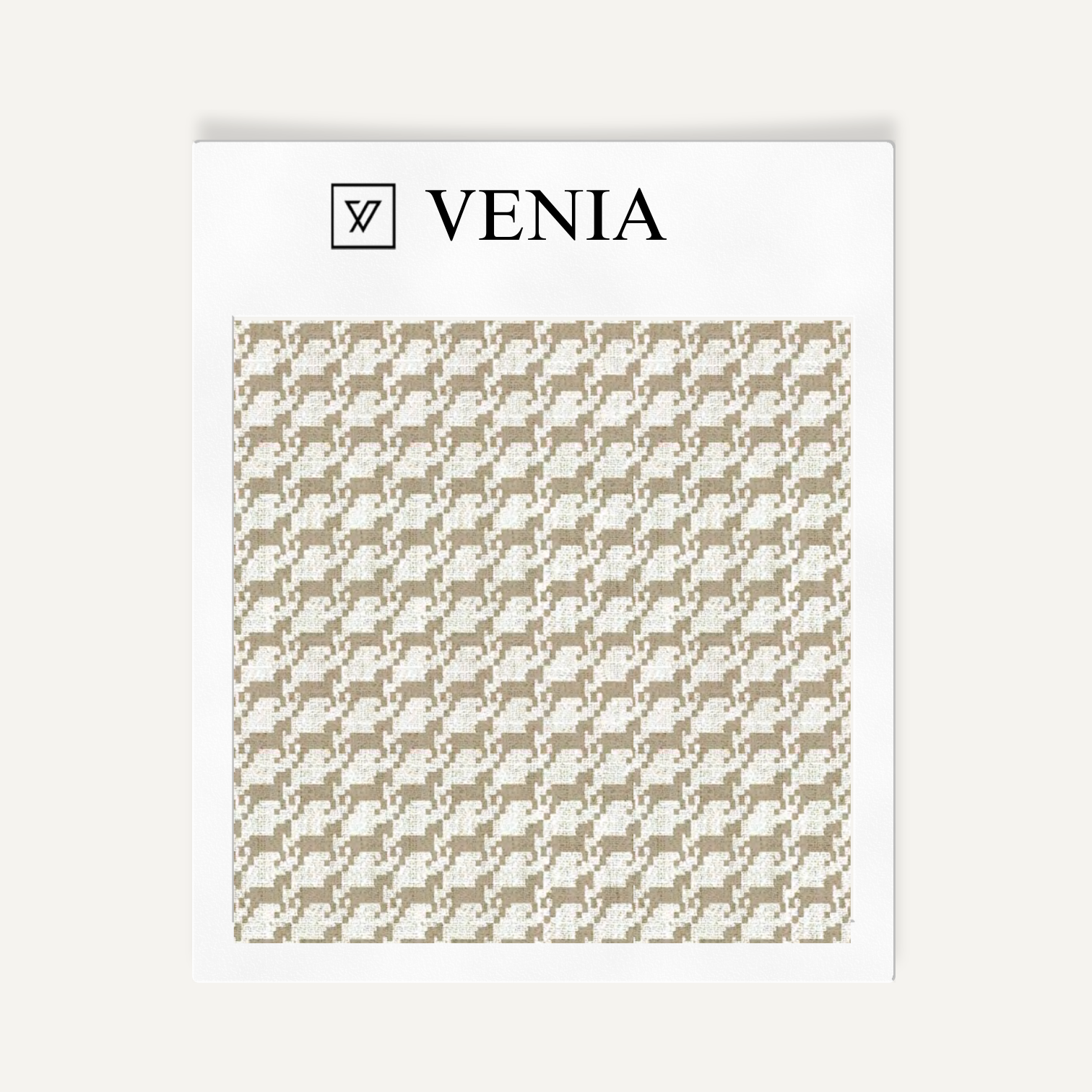 Heritage Houndstooth Fabric - Ivory with Beige detail