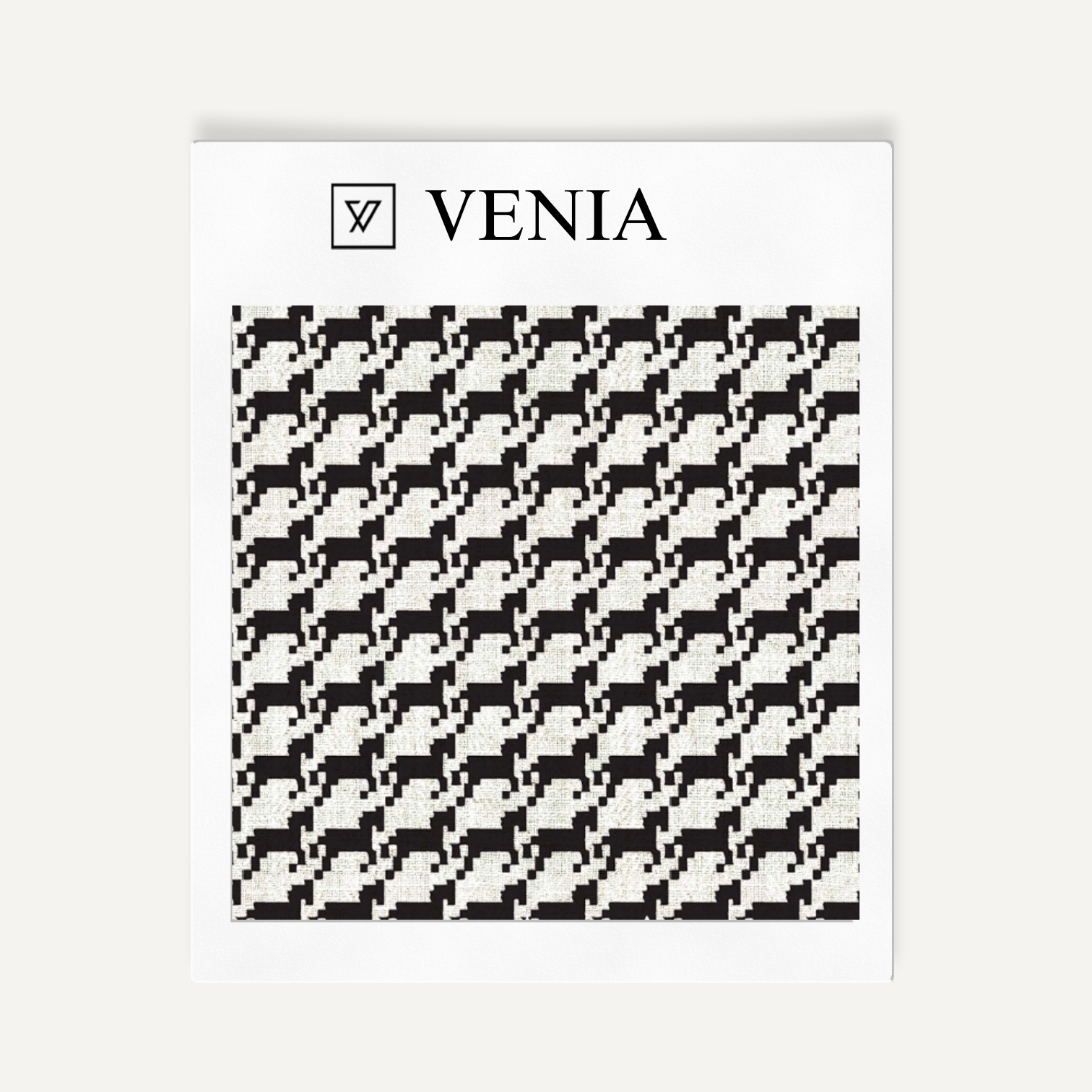 Heritage Houndstooth is a timeless upholstery fabric that celebrates the classic mid-scale houndstooth motif. With its crisp black-and-ivory contrast, the pattern carries a tailored elegance reminiscent of heritage textiles, yet feels fresh in modern interiors. Durable and versatile, this fabric is ideal for accent chairs, cushions, or drapery that need a bold but sophisticated statement.
