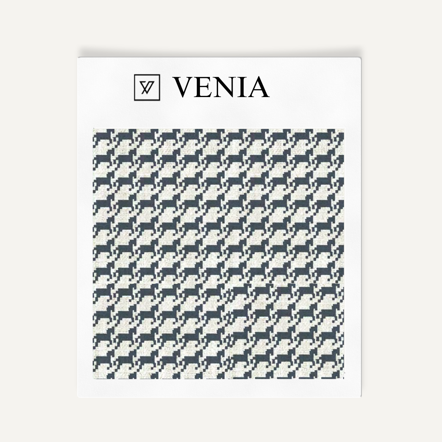 Heritage Houndstooth is a timeless upholstery fabric that celebrates the classic mid-scale houndstooth motif. With its crisp contrast, the pattern carries a tailored elegance reminiscent of heritage textiles, yet feels fresh in modern interiors. Durable and versatile, this fabric is ideal for accent chairs, cushions, or drapery that need a bold but sophisticated statement.