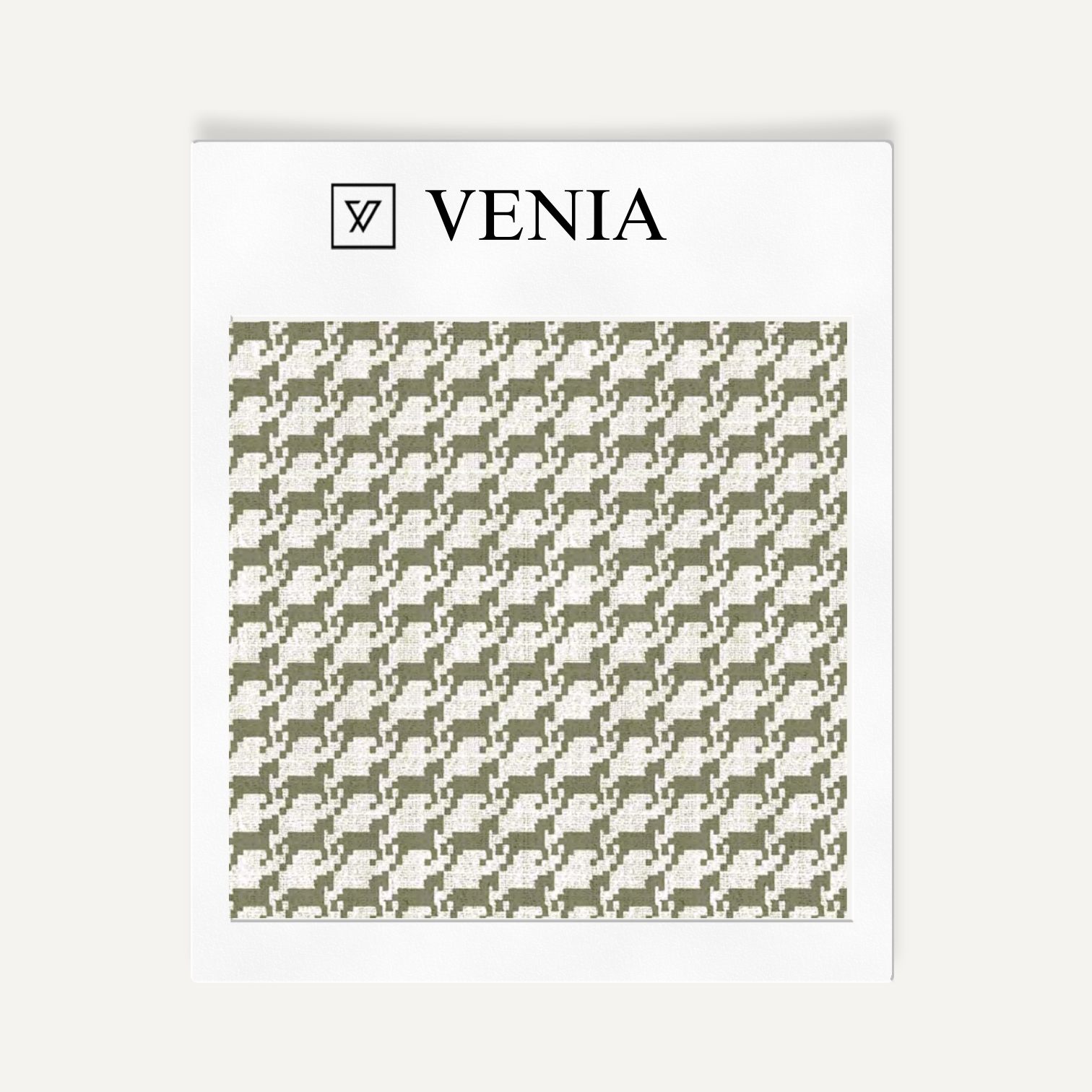 Heritage Houndstooth Fabric - Ivory with Olive detail