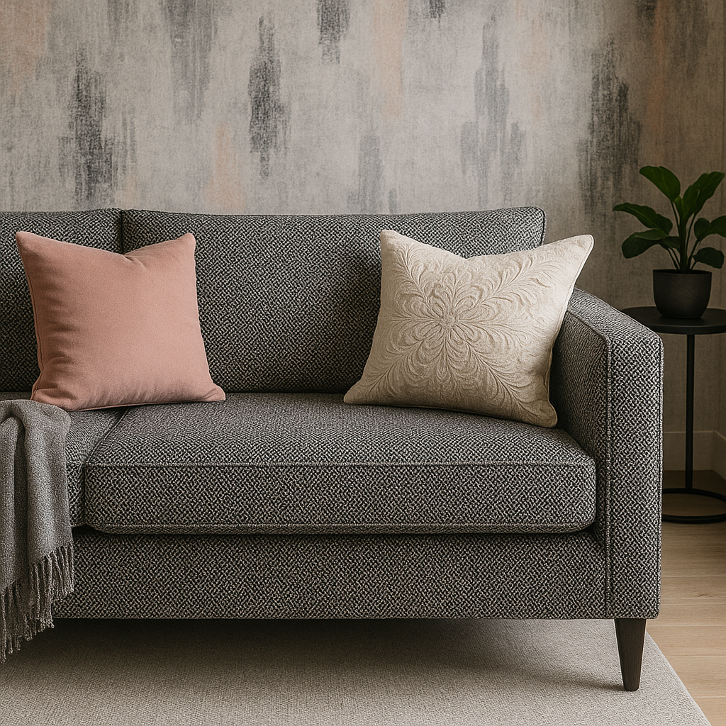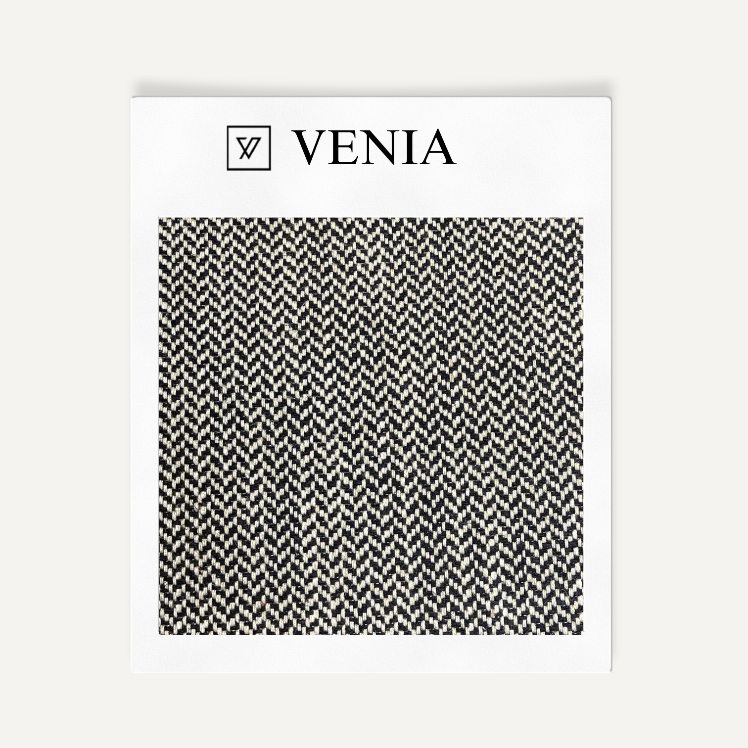 A sharp herringbone repeat in rich black and soft white, the fabric lends bold geometry to a neutral palette. Striking yet versatile, it enhances both upholstery and accent chairs.