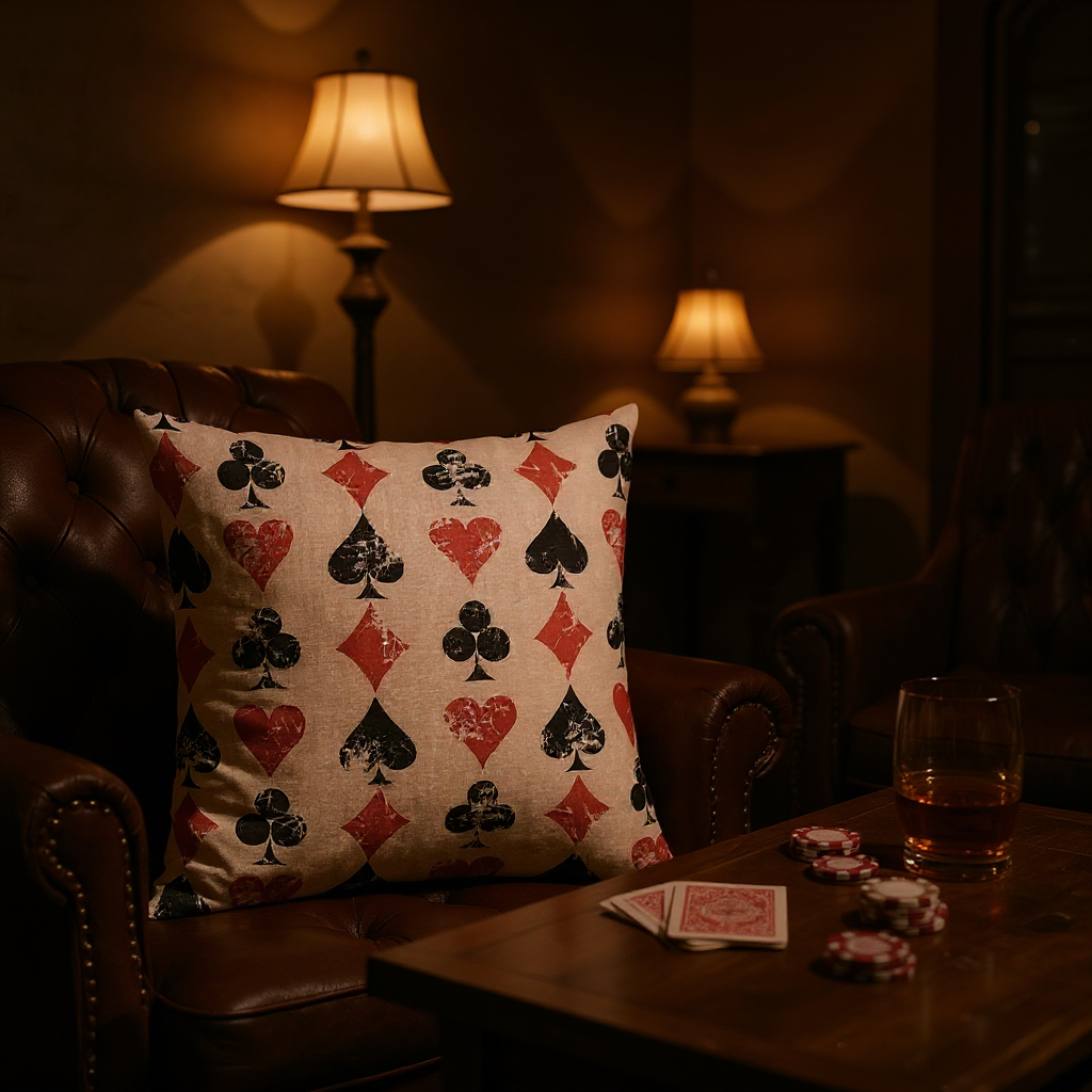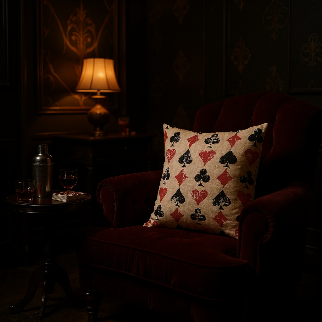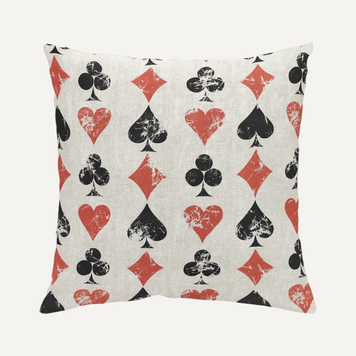 House of Cards turns playful design into modern décor, with bold suit motifs on a crisp white cushion. A spirited accent, perfect for gatherings or festive styling.