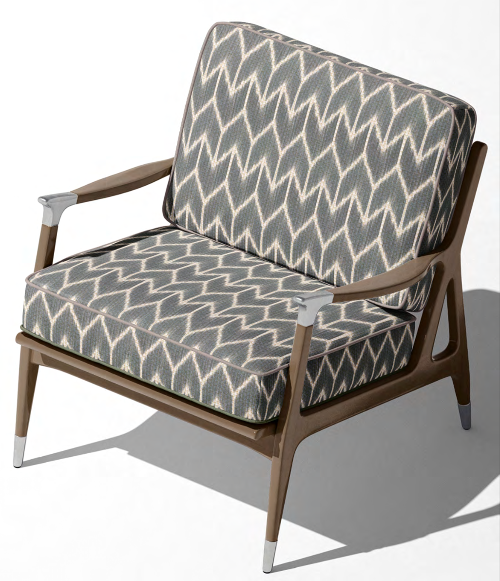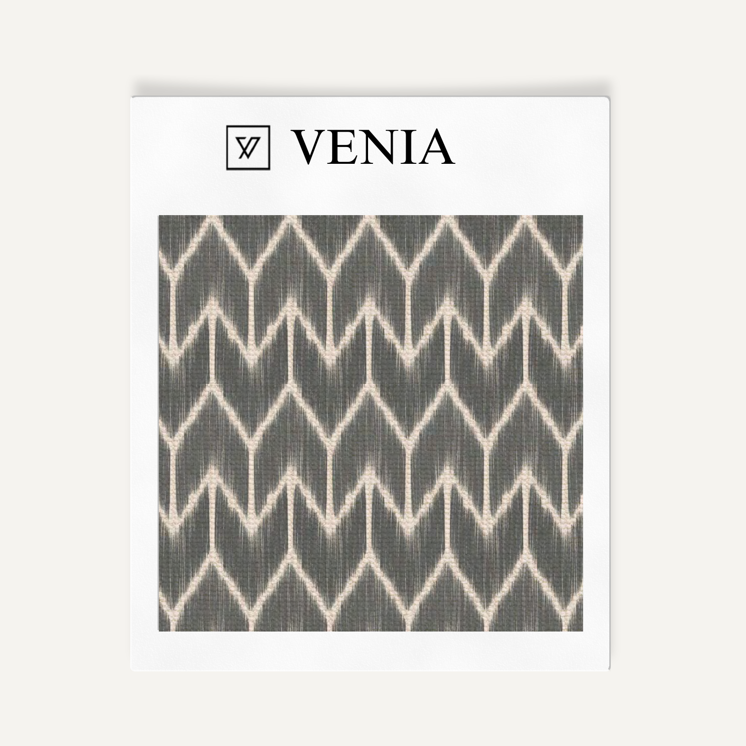 The Ikat Arrowhead Fabric brings movement and structure together. Its arrow-shaped zigzags blur gently at the edges in true ikat fashion, creating a pattern that feels dynamic but grounded. Rich colorways — from deep charcoals to jewel brights — make it a striking choice for sofas, ottomans, or curtains that call for crafted geometry.
