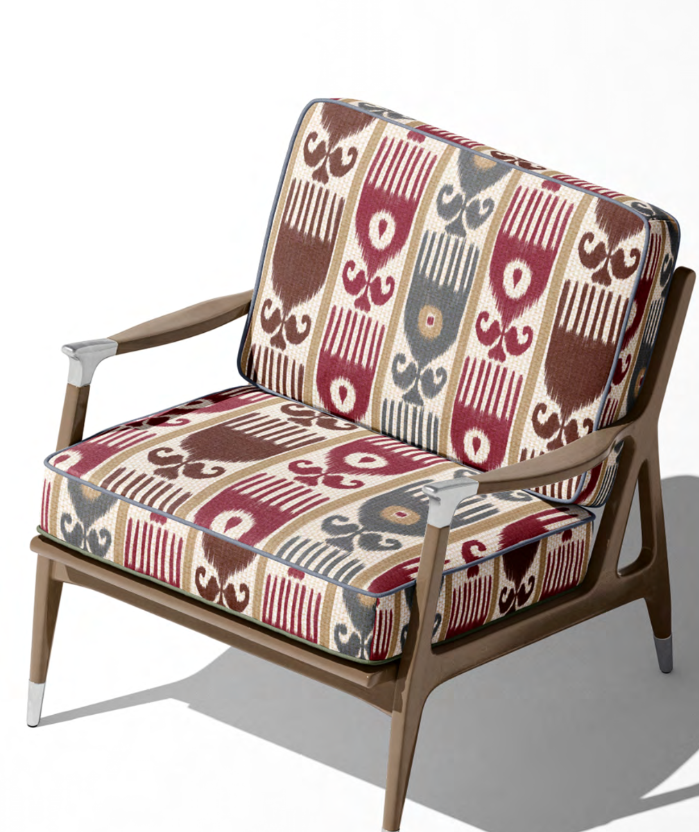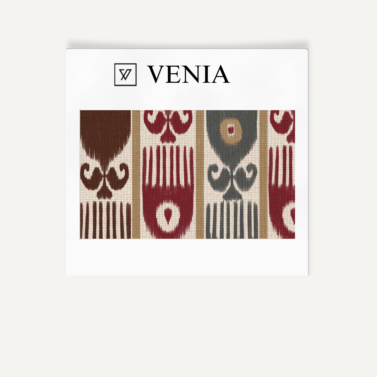 Ikat Grid is a meeting of order and blur. Diamond-shaped repeats form a structured grid, but the ikat weaving softens each line into feathered edges. The result is a textile that balances discipline with hand-dyed artistry, versatile enough for modern or traditional interiors.