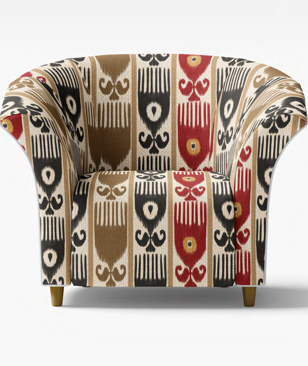 Ikat Grid is a meeting of order and blur. Diamond-shaped repeats form a structured grid, but the ikat weaving softens each line into feathered edges. The result is a textile that balances discipline with hand-dyed artistry, versatile enough for modern or traditional interiors.