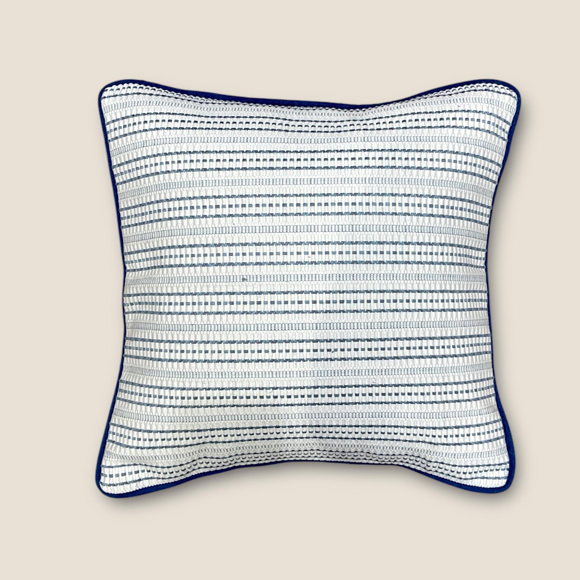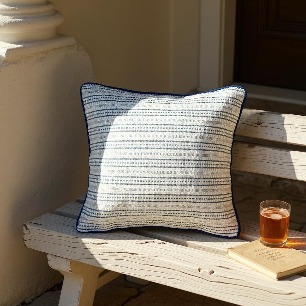 A gentle nod to tradition, Indigo Whisper pairs crisp white cotton with delicate blue texture like quiet echoes across fabric. Light, airy, and timeless, this cushion brings a sense of calm craftsmanship. Perfect on its own or layered with deeper hues.