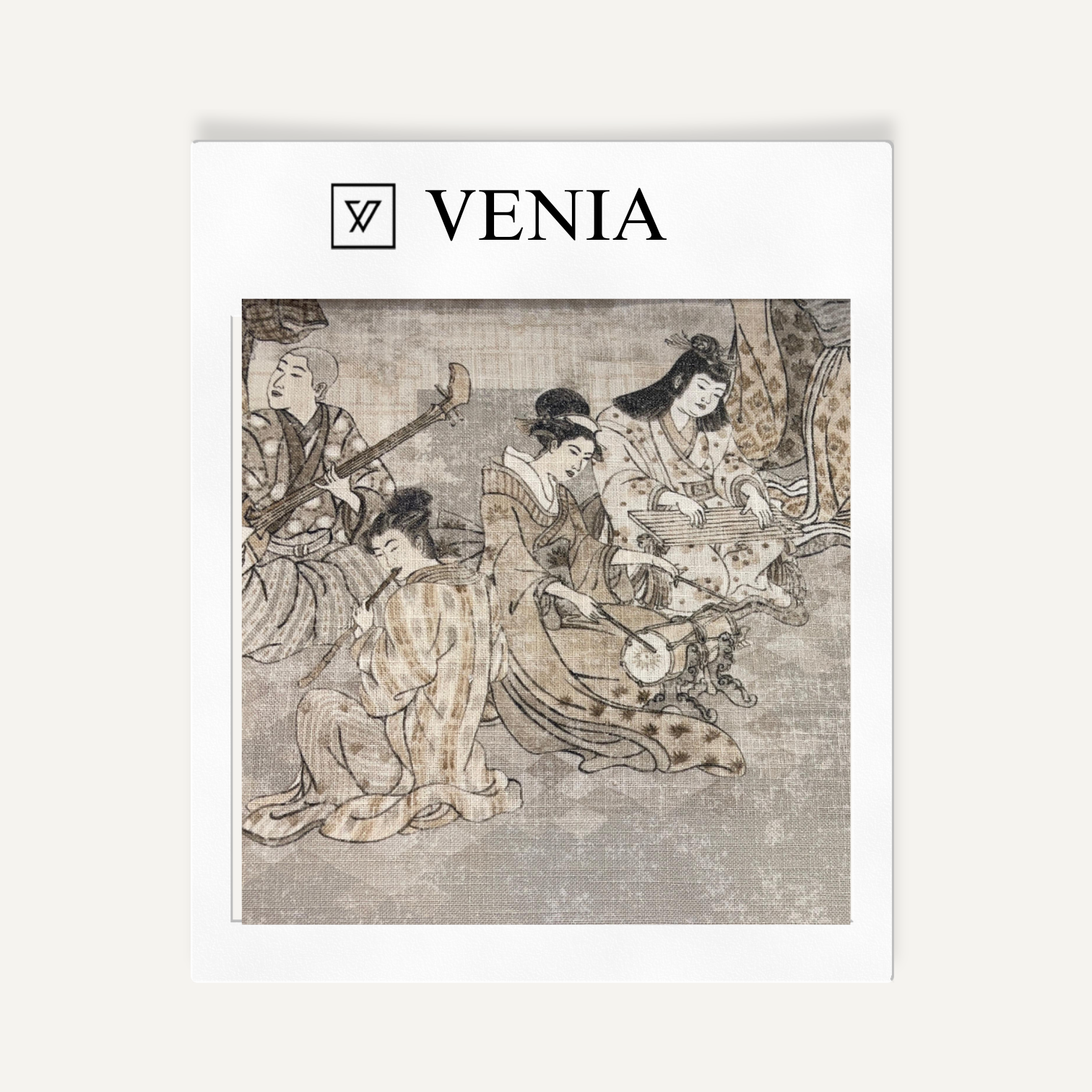 Named after to the traditional Japanese string instrument, the Koto Fabric captures moments of quiet harmony. The fabric features delicate illustrations of musicians in repose - a tribute to Japan’s classical arts.