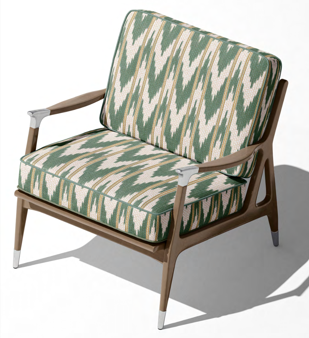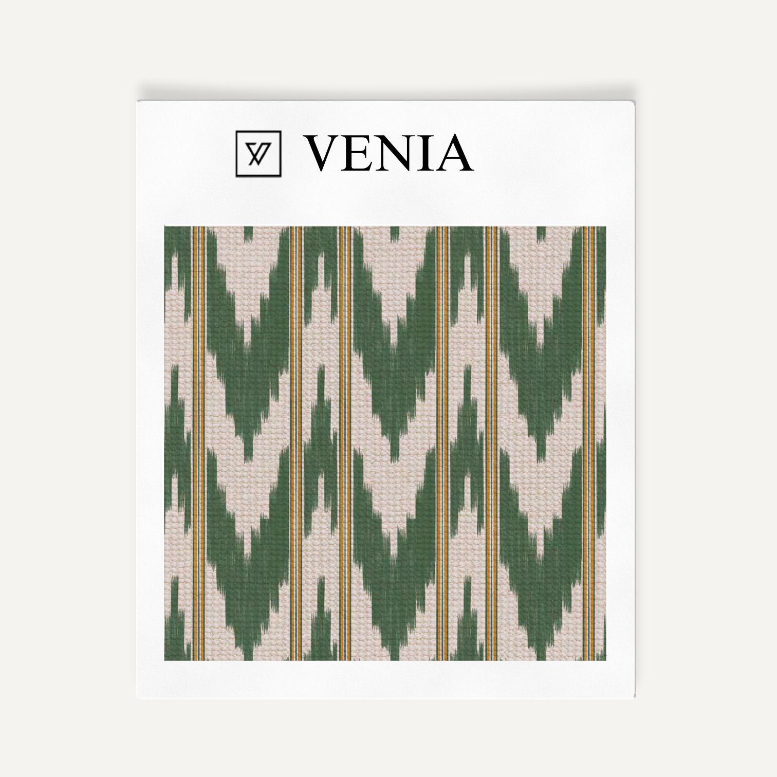 Linear Wave reinterprets the familiar V-pattern as a bold, modern textile. Its sharp lines recall the order of architectural trellises and the rhythm of woven craft, yet its colorways bring warmth and play. Ideal for upholstery, ottomans, and cushions, it works as a geometric anchor in eclectic or contemporary spaces.