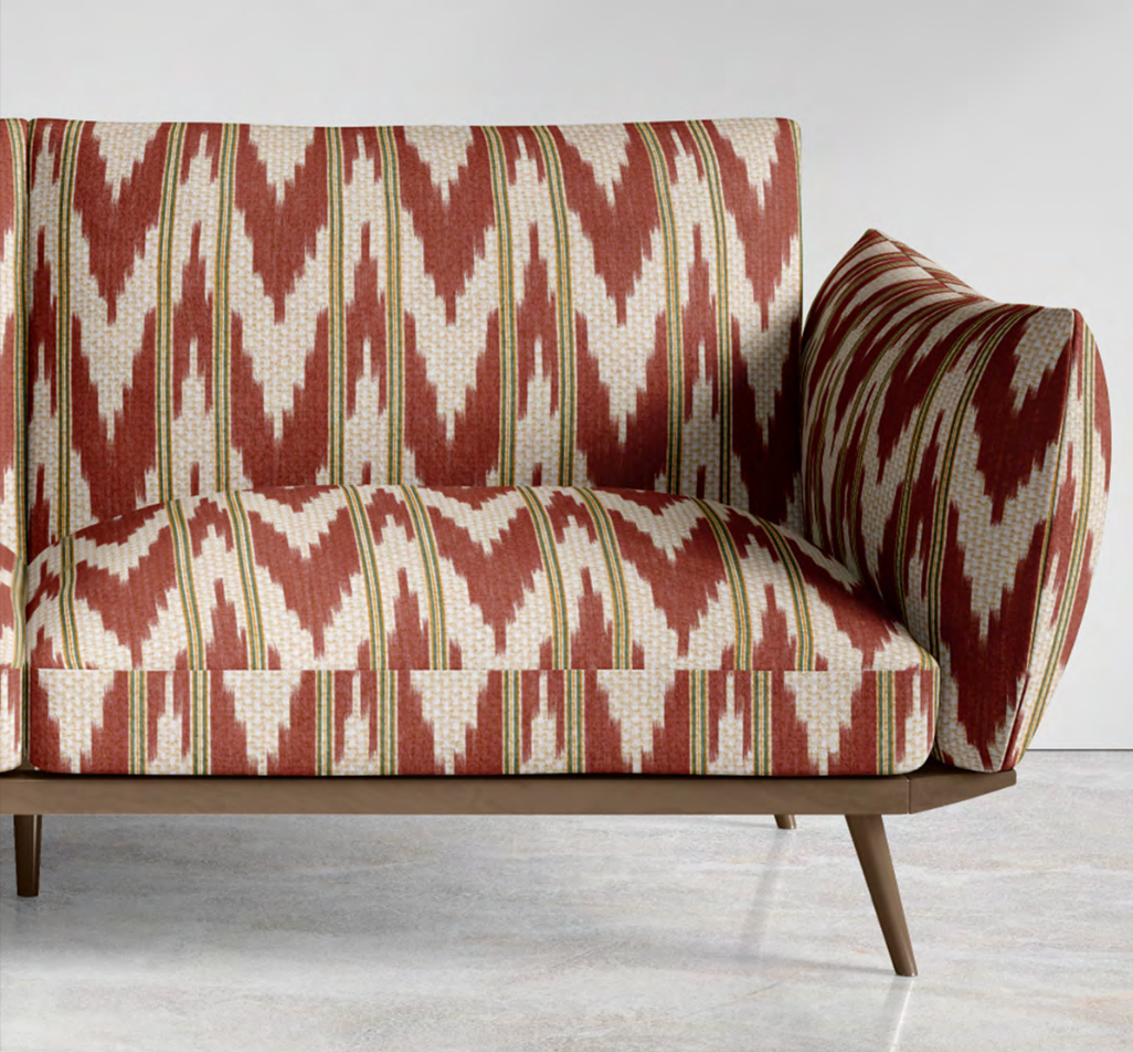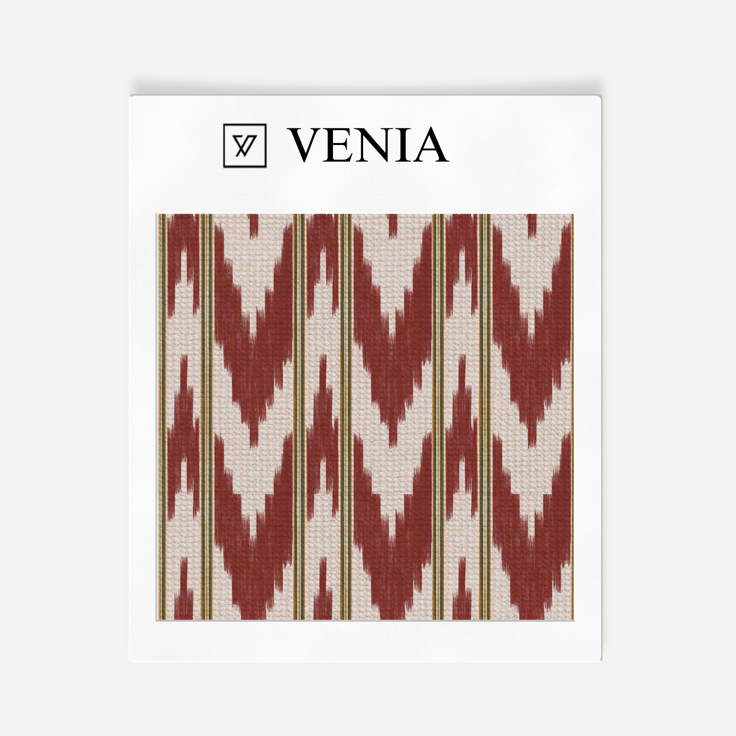 Linear Wave reinterprets the familiar V-pattern as a bold, modern textile. Its sharp lines recall the order of architectural trellises and the rhythm of woven craft, yet its colorways bring warmth and play. Ideal for upholstery, ottomans, and cushions, it works as a geometric anchor in eclectic or contemporary spaces.