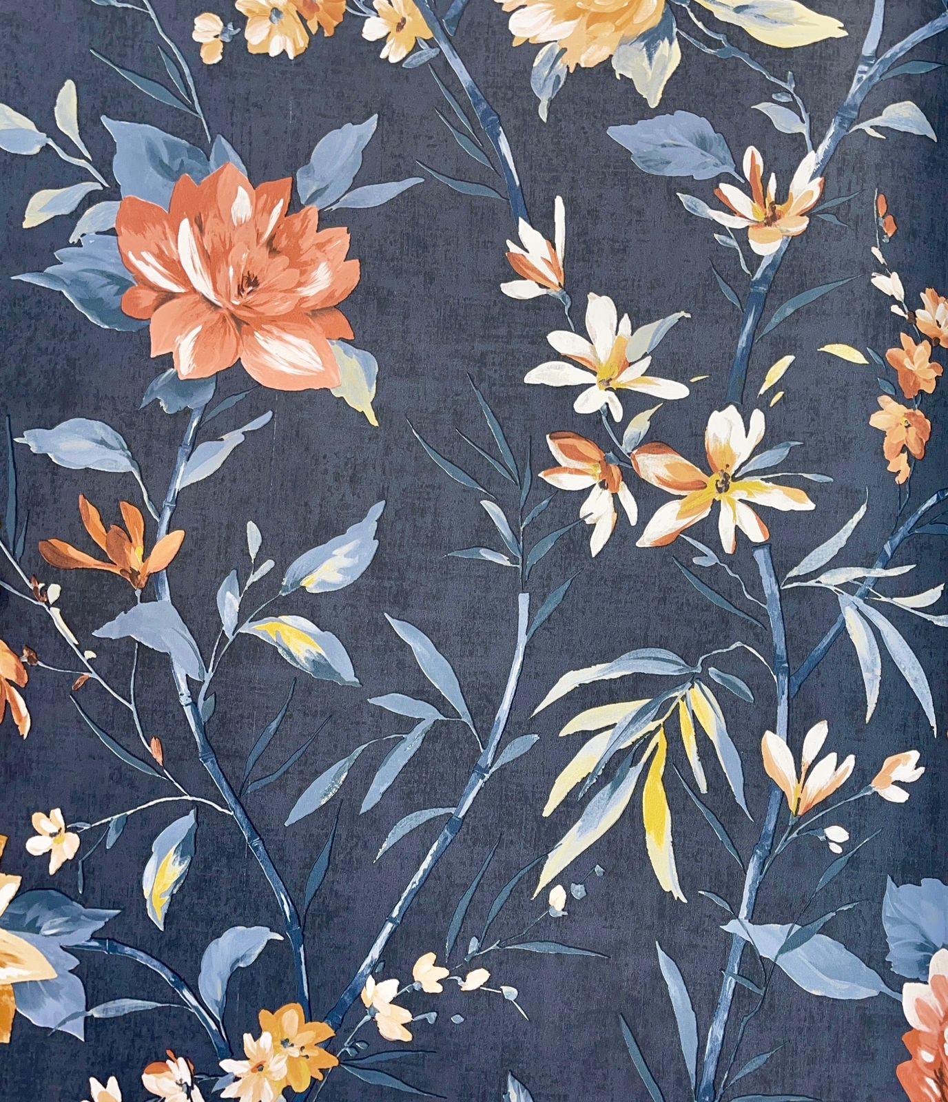 Immerse your walls in the depth and elegance of Meadow Muse – Midnight. The rich indigo base sets off the hand-painted florals in soft corals, sunny yellows, and creamy whites, creating a dramatic yet refined statement. Perfect for accent walls and sophisticated interiors.