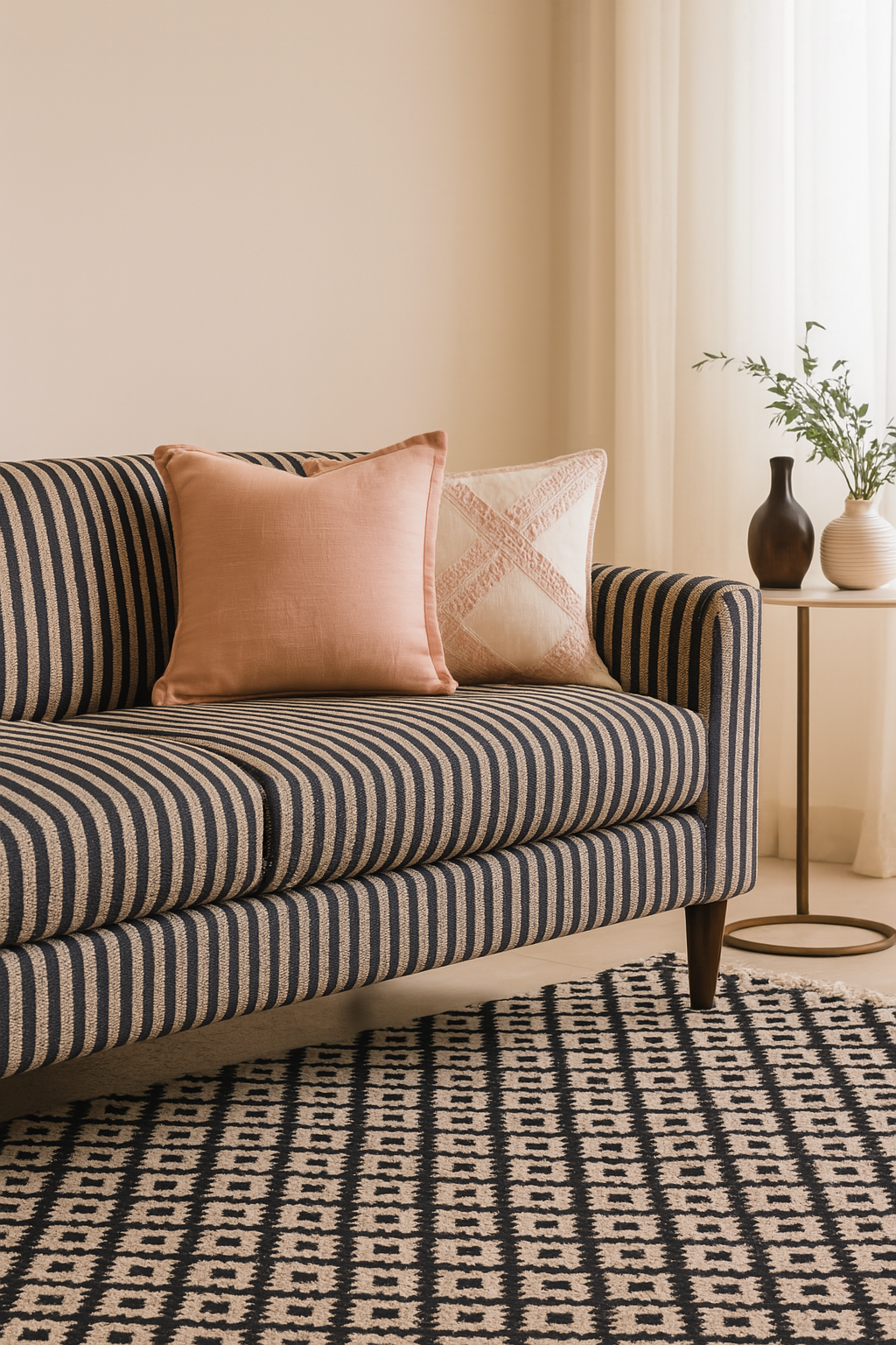 Striking vertical columns in bold contrast create height and form. Midnight Columns is a refined choice for modern interiors needing balance and rhythm.