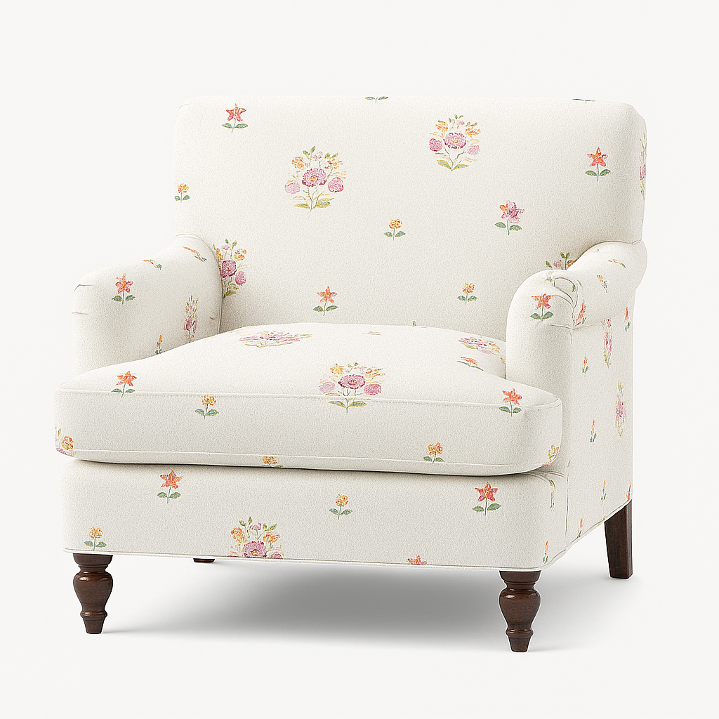 A soft pearl-toned fabric with delicate florals that reveal themselves as light catches the surface. The gentle sheen gives it a refined glow without being over the top. Ideal for neutral interiors, formal settings, or layered tonal styling.