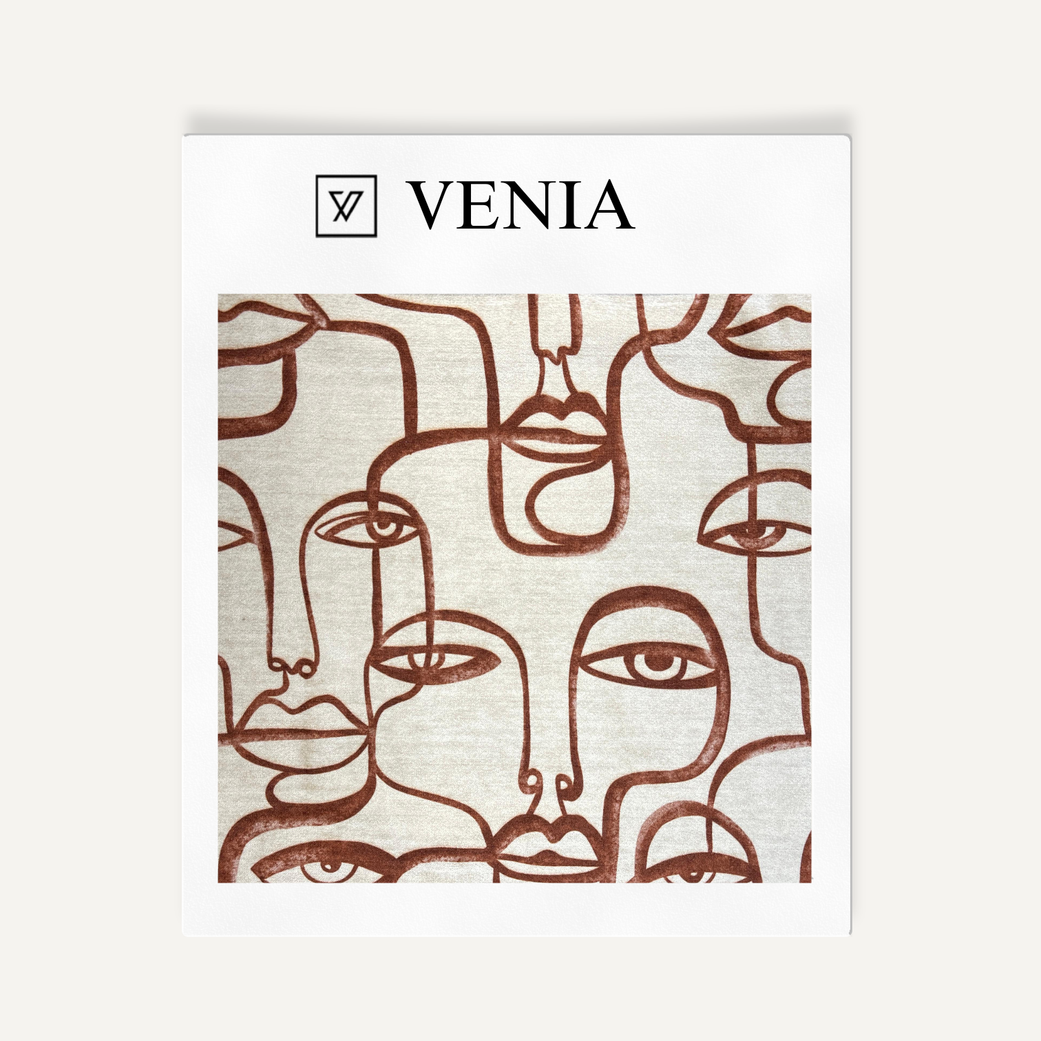 Muse – Abstract Line Art Face Fabric - Terracotta
