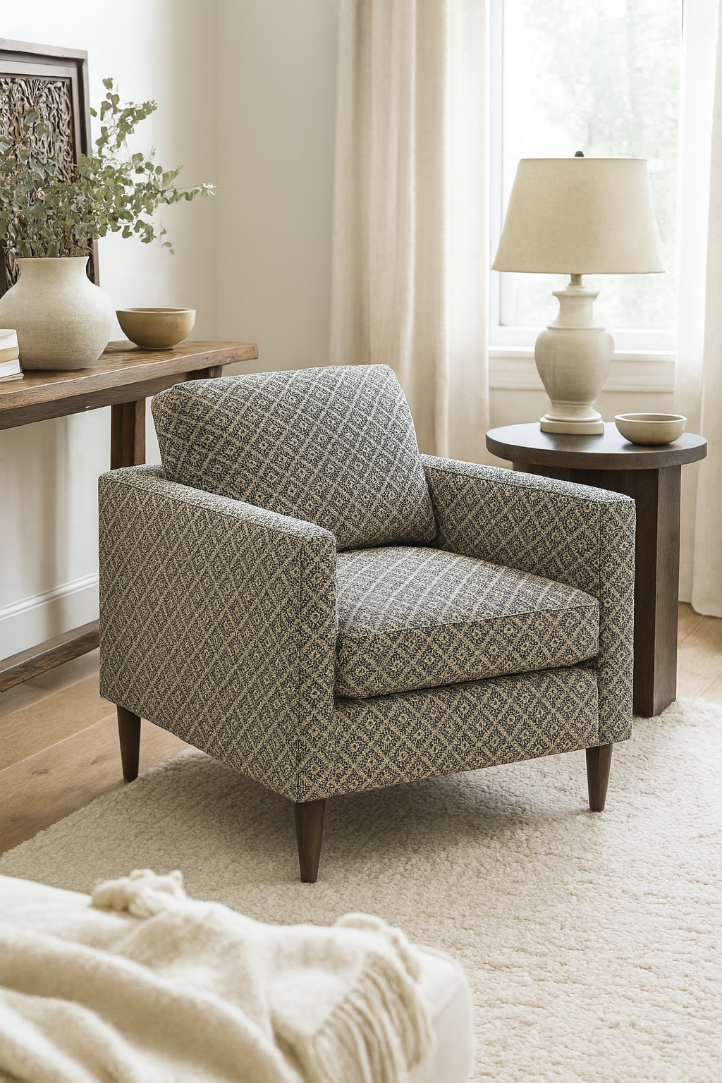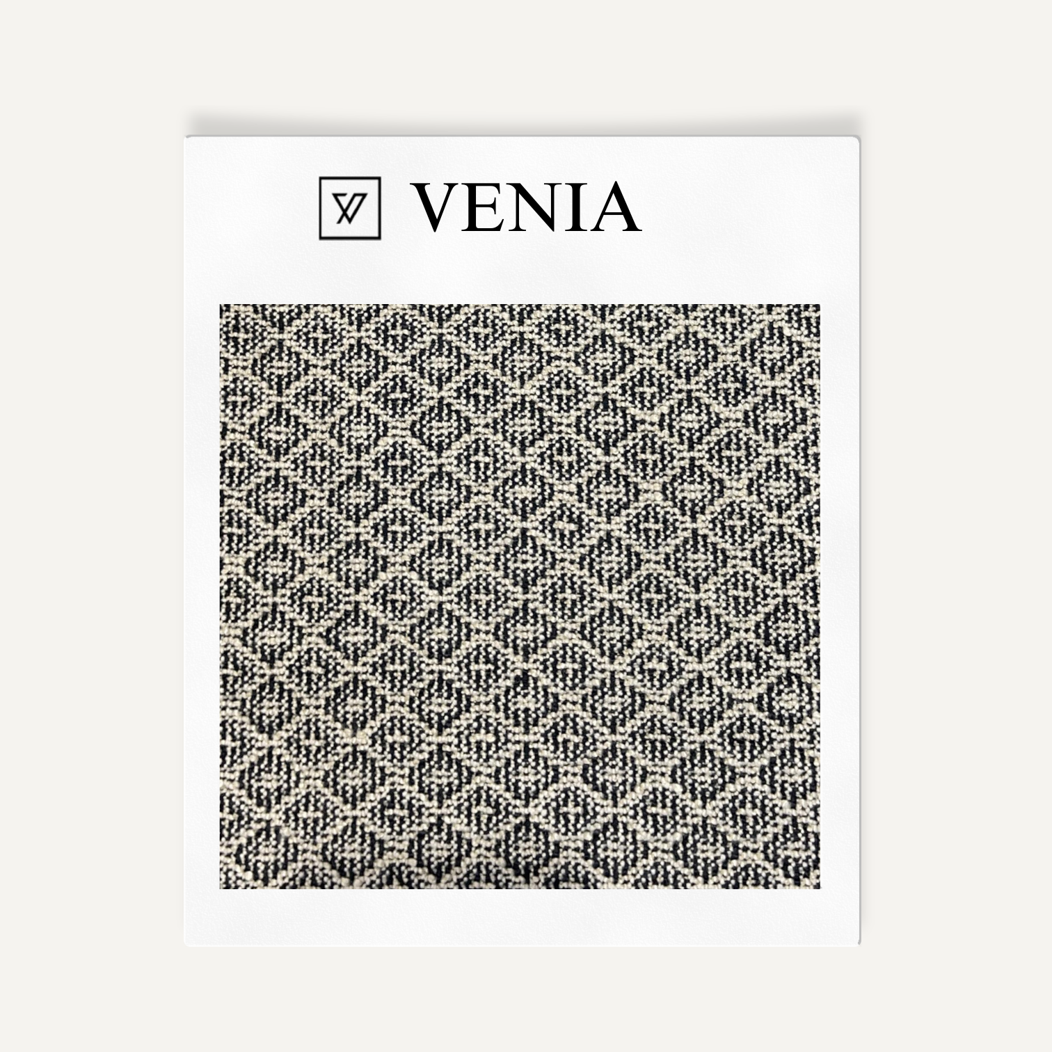 An all-over woven design in black and white, Noir Weave brings depth and tactility. It’s an elegant option for furniture that needs quiet character.