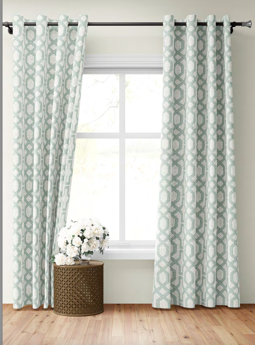Octagon Lattice Fabric - Ivory with Jade Green detail