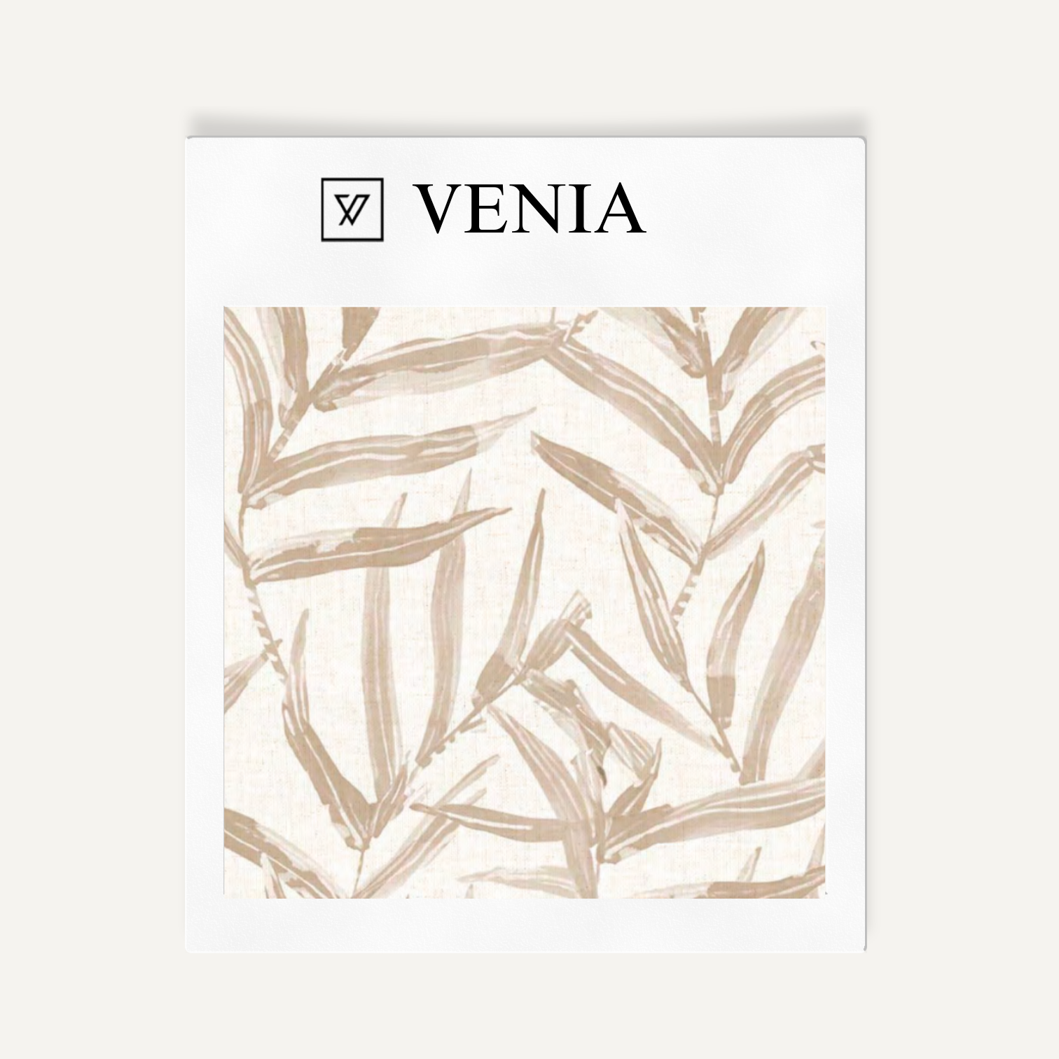 Palm Sketch brings an artistic, hand-painted look to tropical interiors. With bold brushstroke leaves across a neutral ground, it feels modern yet organic. The fabric works beautifully for statement curtains, relaxed upholstery, and coastal-inspired spaces.