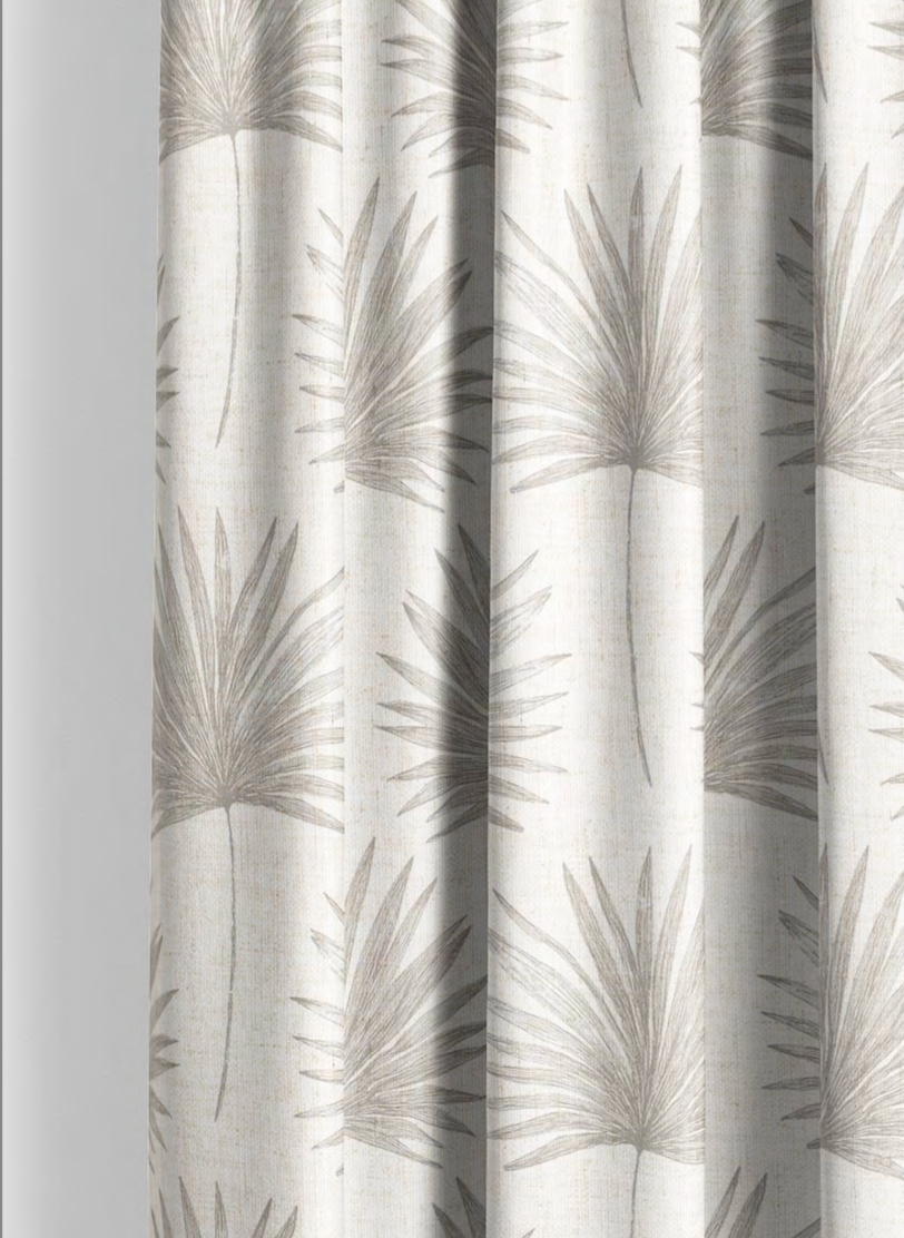 Palm Vista celebrates the drama of oversized palm fronds. Its crisp motif adds boldness without heaviness, making it a striking choice for tropical interiors. Ideal for curtains, blinds, and coastal-inspired upholstery.