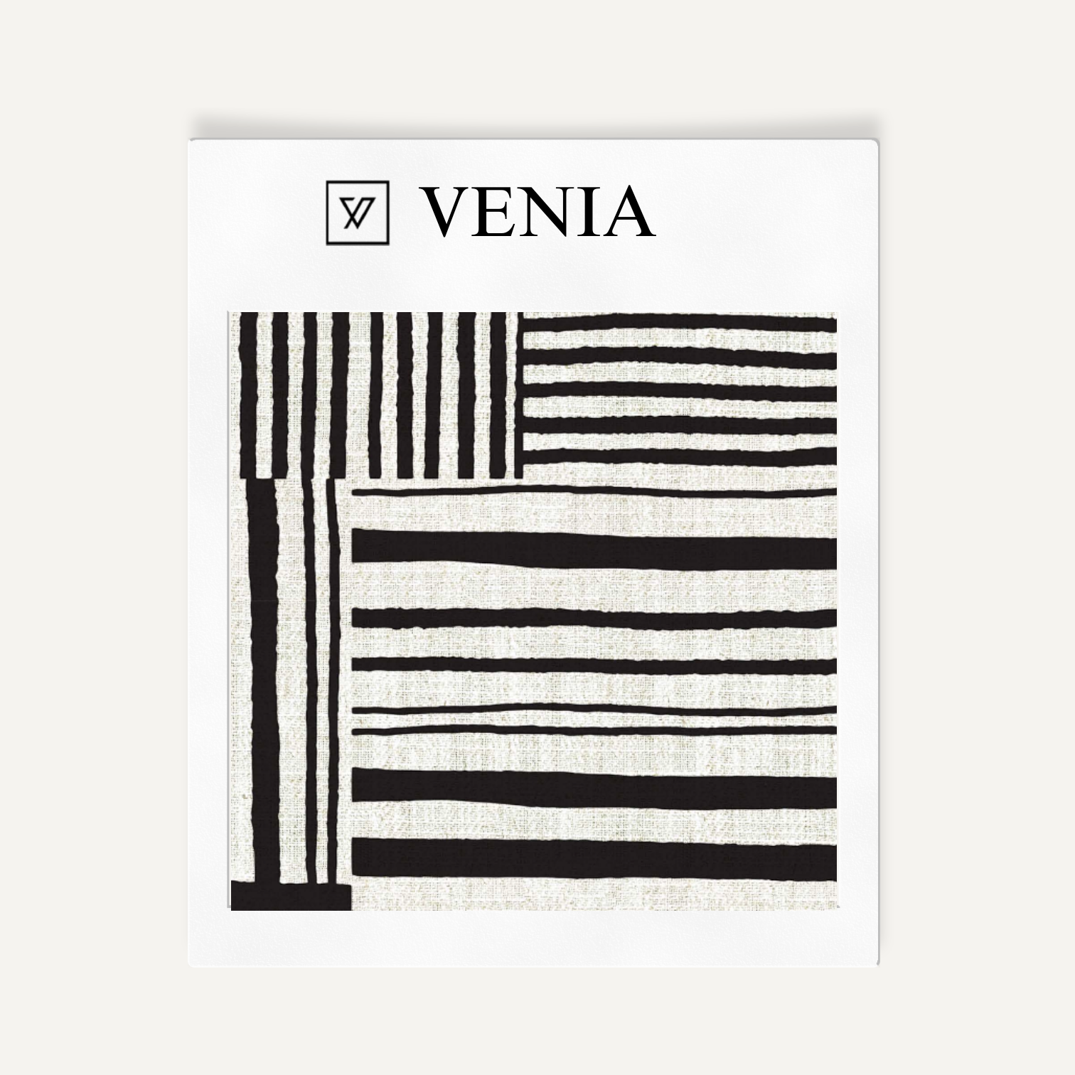 Patch Stripes is a modern stripe design with alternating bands of varying thickness. The painterly irregularity adds warmth, making it less formal than classic stripes while still bold enough to anchor a space.