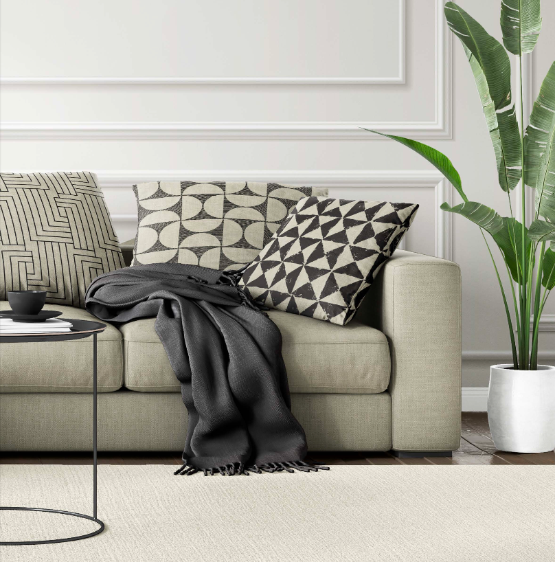Prism Check reimagines the check in a bold, triangular tessellation. The angular repeat adds edge and dynamism, making it ideal for statement upholstery or striking accent décor.