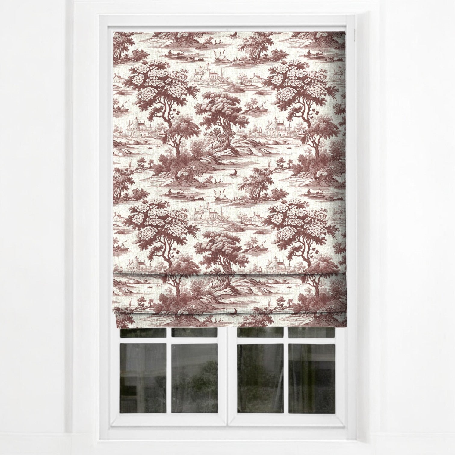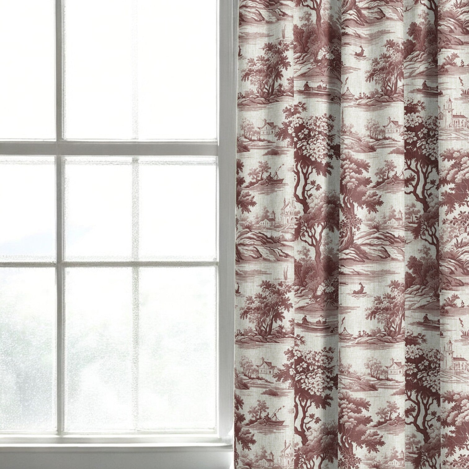 Riverbend Toile Fabric - Crimson