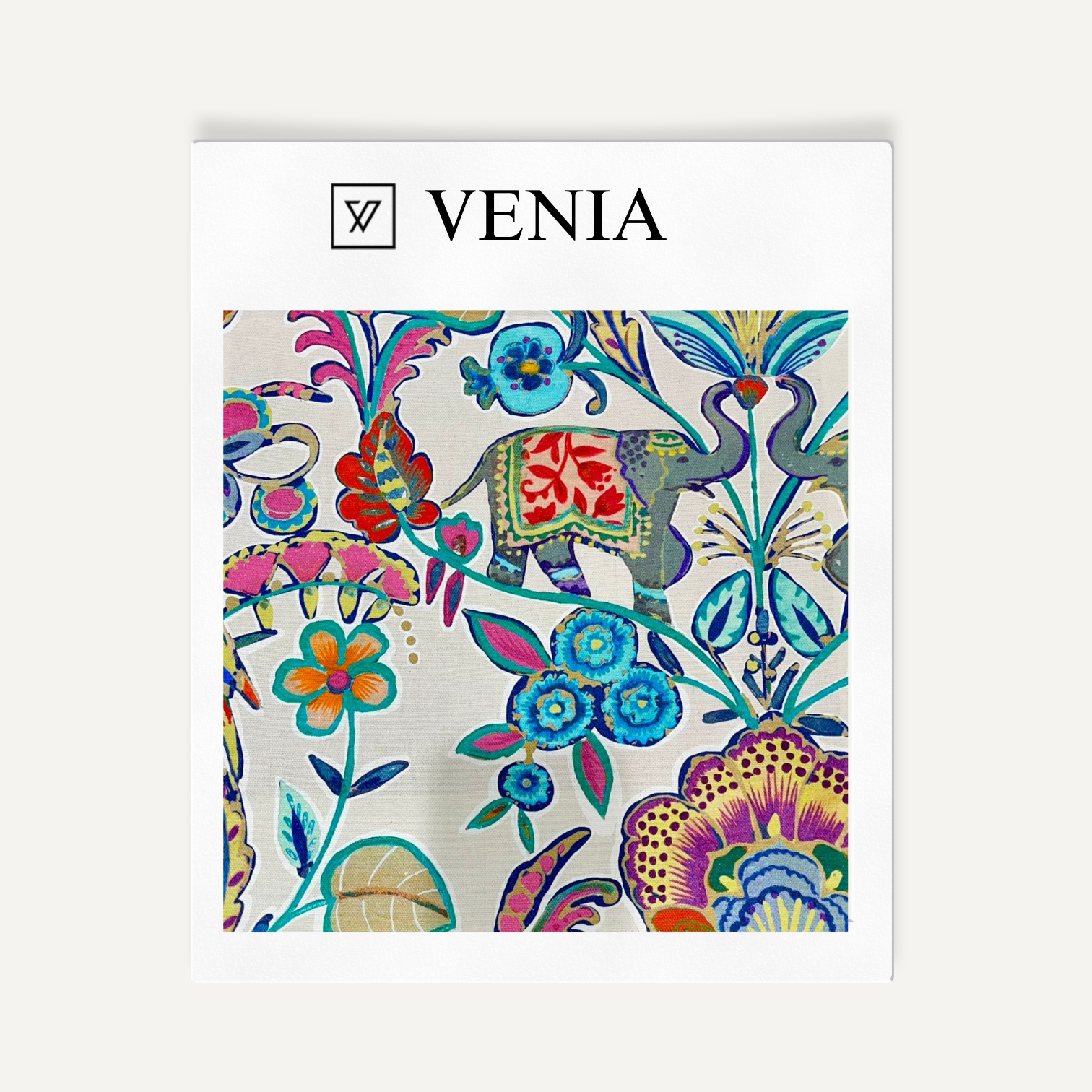Bold and expressive, Royal March – Cobalt is a celebration of colour and pattern. With cobalt florals and vivid elephant motifs, this fabric brings an energetic, maximalist spirit to your home. A striking choice for accent chairs, headboards, or statement drapery.