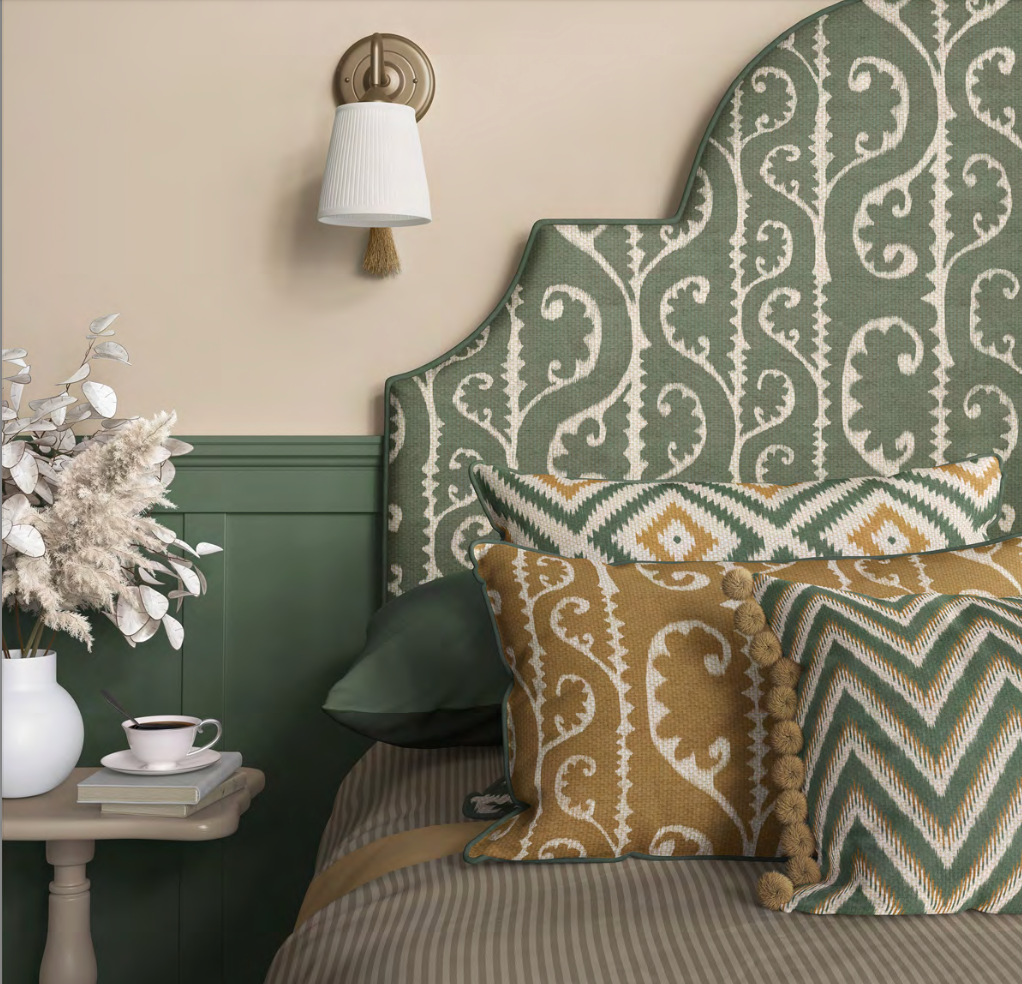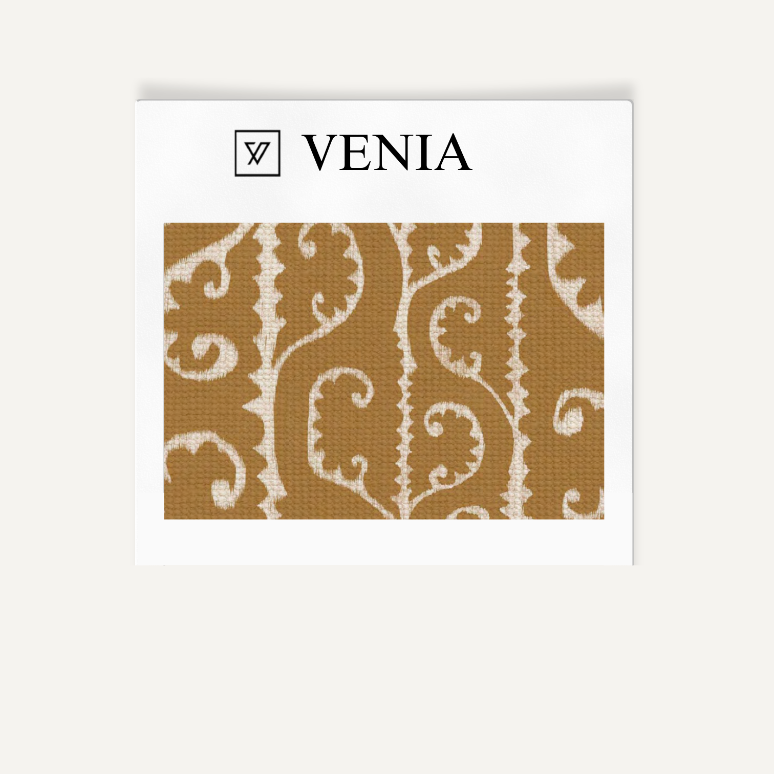 Scrollwork features flowing ornamental curves reminiscent of arches and carved details from heritage architecture. The pattern adds refinement and quiet elegance, ideal for curtains, cushions, or upholstered pieces that benefit from a touch of decorative flourish.