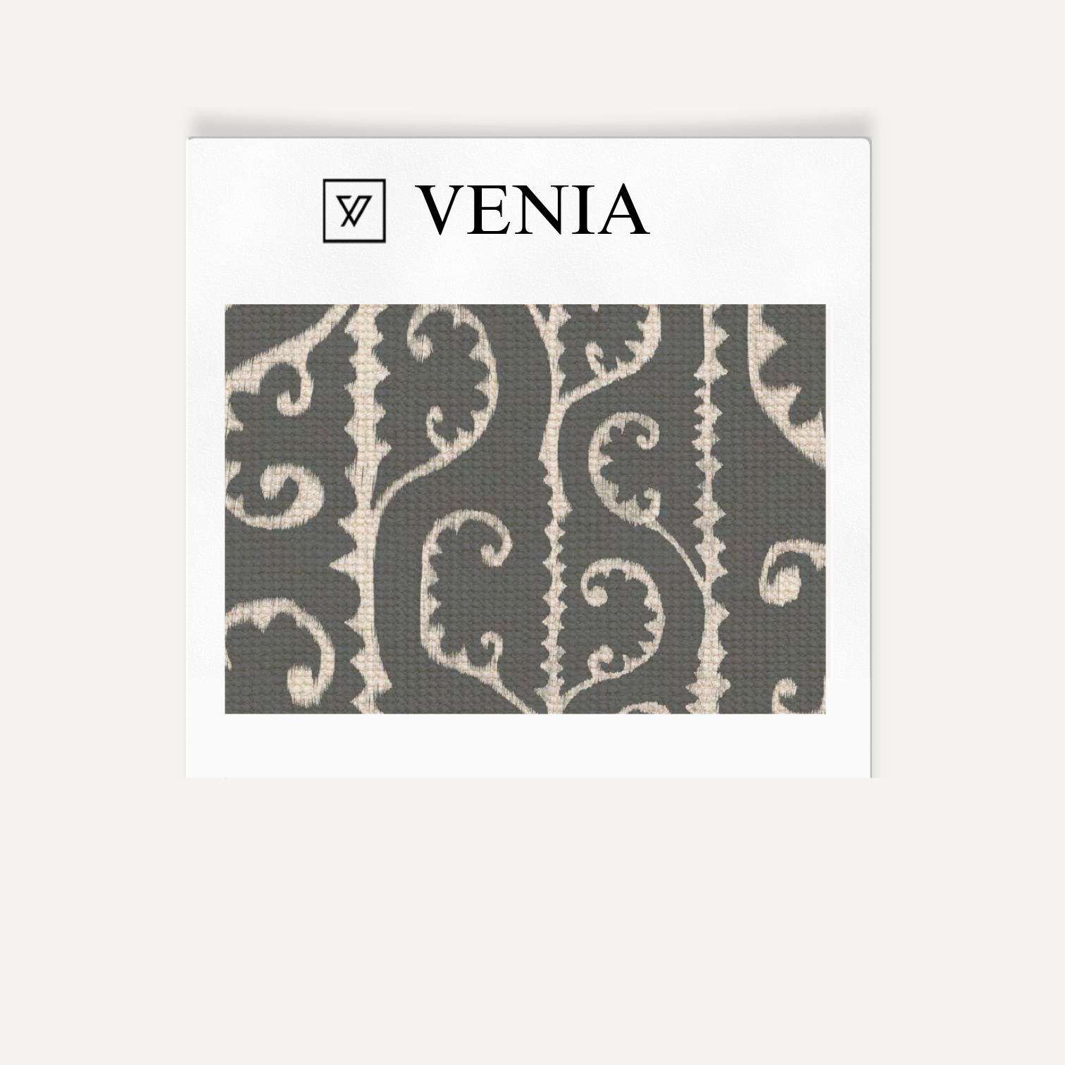 Scrollwork features flowing ornamental curves reminiscent of arches and carved details from heritage architecture. The pattern adds refinement and quiet elegance, ideal for curtains, cushions, or upholstered pieces that benefit from a touch of decorative flourish.