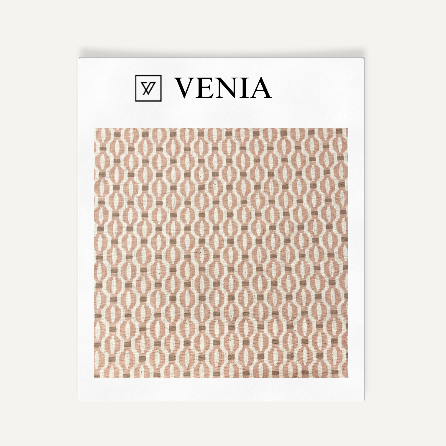 Align features a structured vertical repeat in warm pink and ivory. Subtle yet graphic, its clean symmetry adds quiet sophistication to interiors. Ideal for curtains, cushions, or upholstery where gentle geometry meets warm tone.