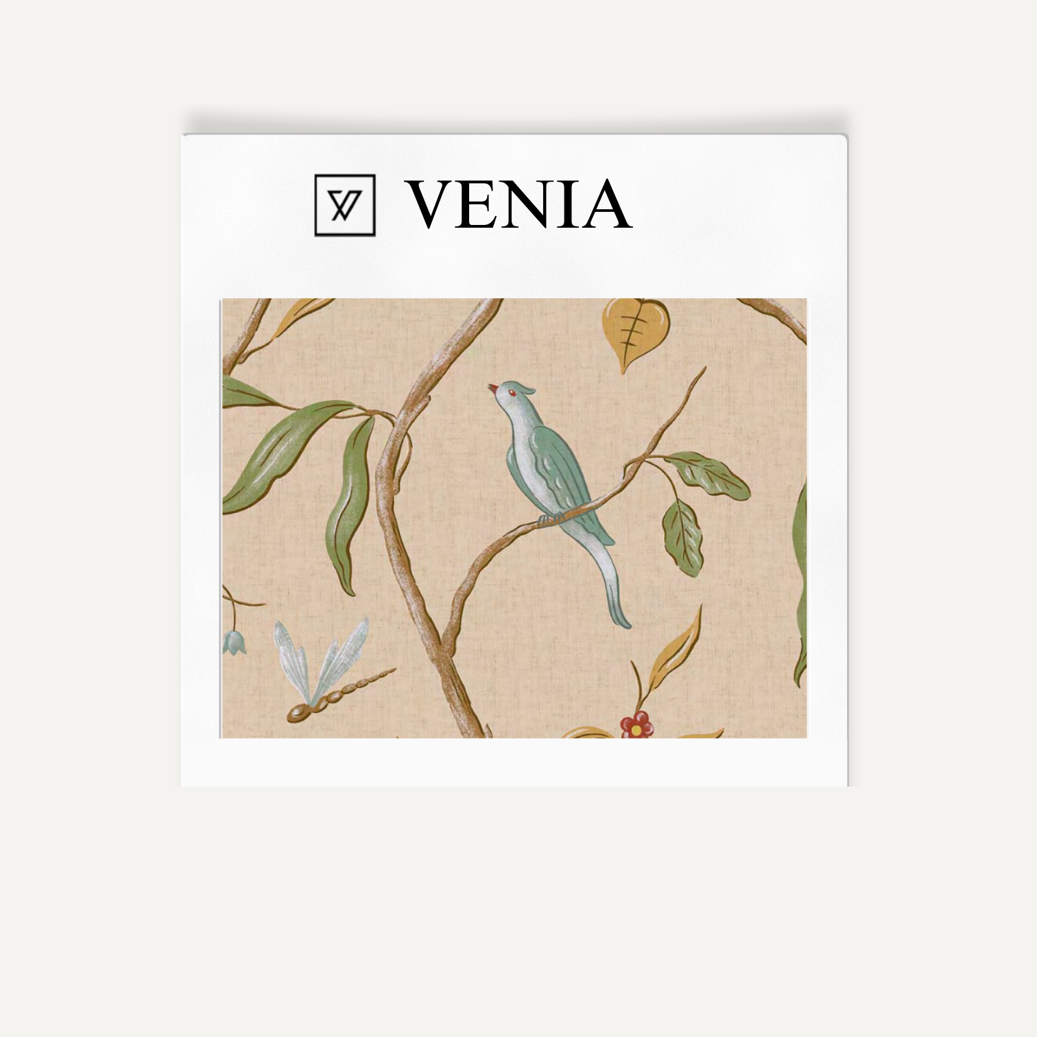 Songbird Trail depicts perched birds on branches with painterly leaves and blossoms. Evocative of garden scenes, this fabric adds whimsy and elegance at once, ideal for feature drapes, blinds, and relaxed upholstery.
