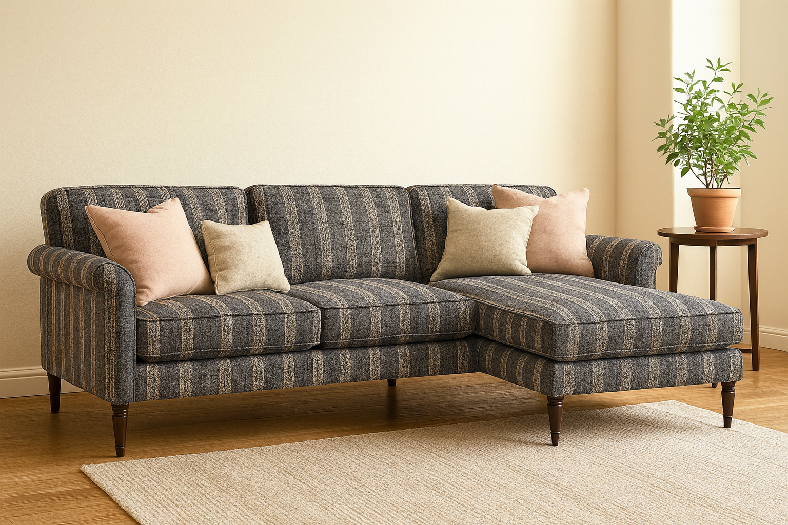 With softened edges and muted stripes, Tundra Stripe is earthy, grounding, and easy to style. A workhorse neutral for layered or minimalist schemes.
