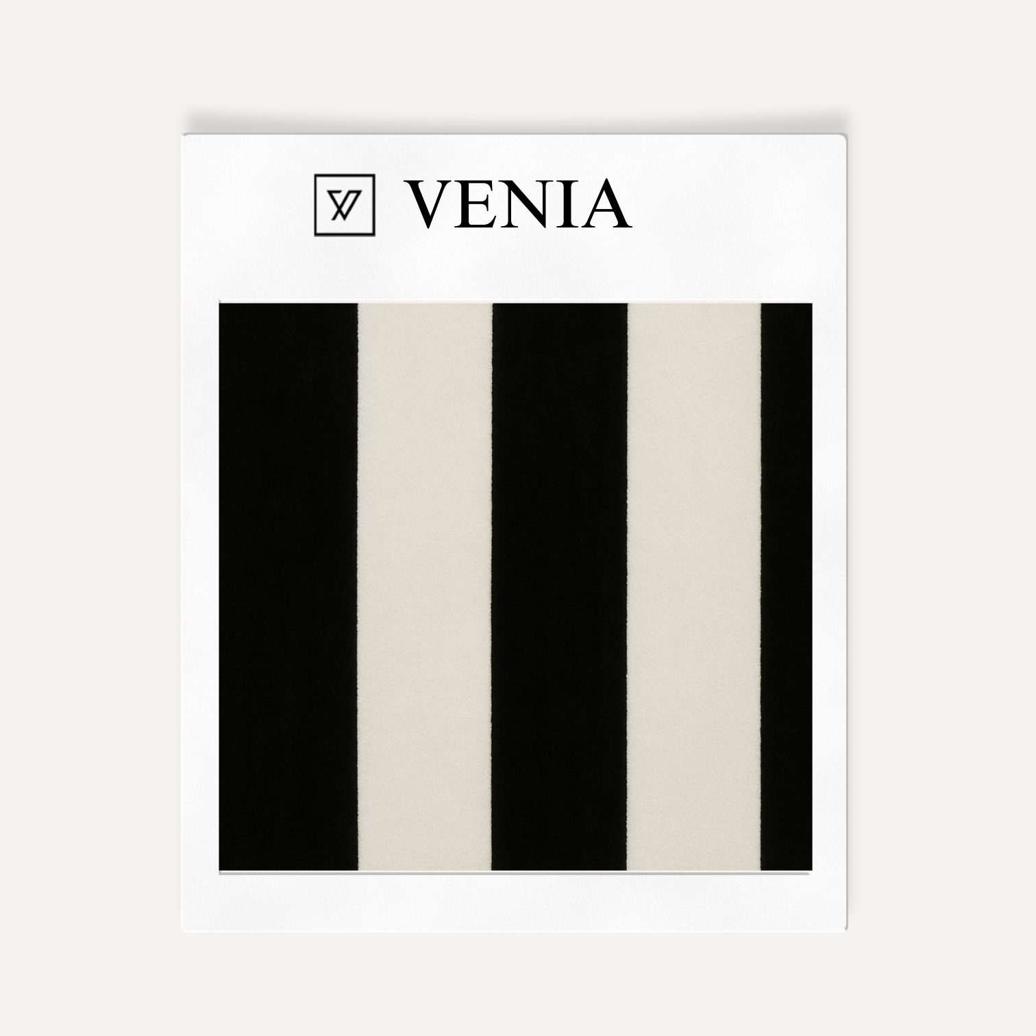 A bold statement in black and white, the Tuxedo Stripe Fabric exudes timeless sophistication. Featuring crisp, evenly spaced stripes, this velvet abric brings a striking contrast that blends classic charm with modern flair. Ideal for upholstery, cushions, and accent pieces, it adds a refined yet bold touch to any space.